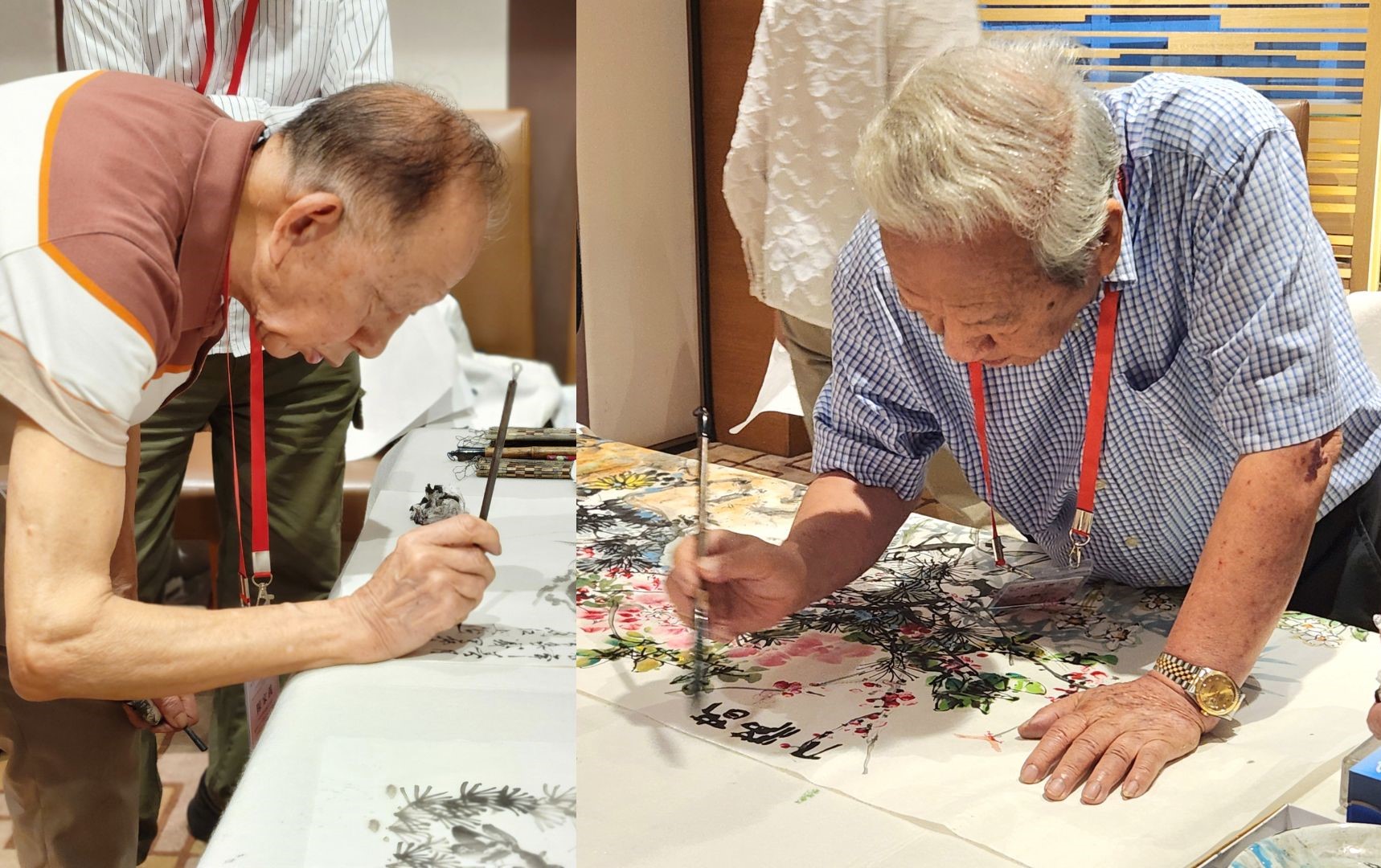 蘇港兩地藝術家於活動的書畫交流筆會上揮毫。海外中國美術家協會主席蕭暉榮帶領該會秘書長蕭芬琪,以及常務理事陳家義、林勇遜、蔡健如、郭迪康、陳佳、許昭奇、王碧影和劉孟寬一同參加筆會,與多位江蘇藝術家切磋技藝,共敘蘇港友誼。