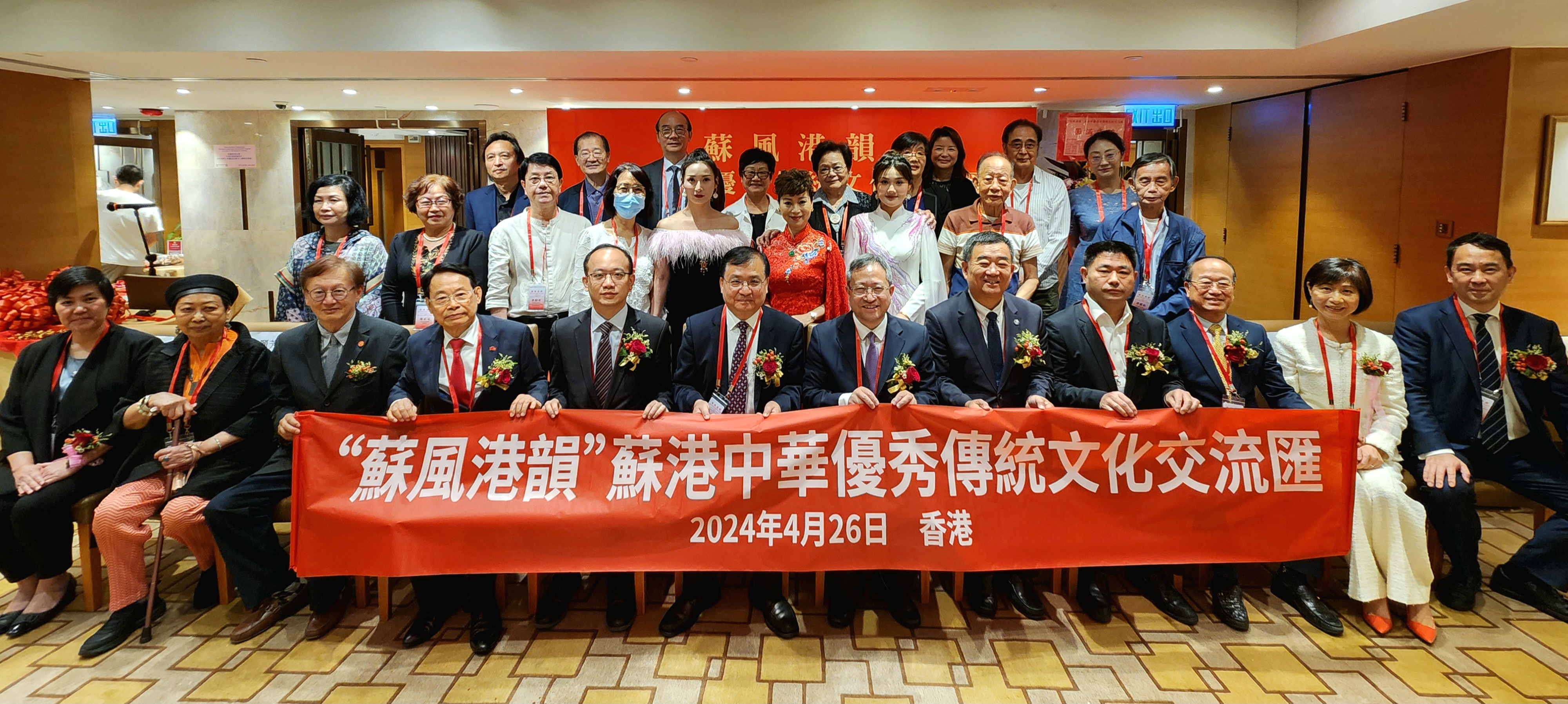 “蘇風港韻”蘇港中華優秀傳統文化交流匯4月26日於中環上海總會舉行。該活動由江蘇中華文化學院、香港江蘇社團總會聯合主辦,由香港江蘇社團總會經貿文化委員會和海外中國美術家協會承辦。近百位香港與江蘇文藝界人士及藝術家出席活動,進行文化交流,多位書畫及表演藝術家並於現場獻藝,展現兩地藝術風采。