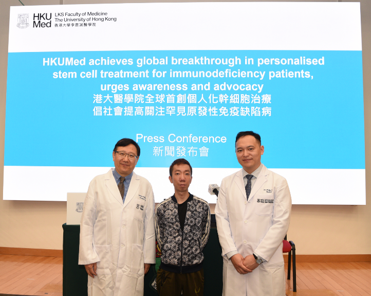 香港大學李嘉誠醫學院(港大醫學院)李曦醫生、劉澎濤教授及劉澤星教授所領導的研究團隊,最近研發了全球首個幹細胞新模型,並應用於個人化治療罕見免疫缺陷病,成功為患者提供新的治療選擇。這項突破性研究成果已發表在《過敏及臨床免疫學期刊》