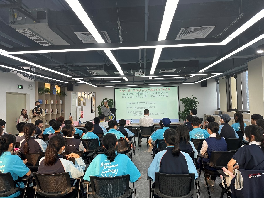 下午同學們來的了珠海加華城市廣場,參觀了設立在八樓的金灣加華港澳台僑青年創新創業基地,珠海市創客協會副會長張成駟爲學生講解了珠海對香港青年在大灣區升學、就業及創業的支持政策等相關資訊,最後中港學生針對學科的問題進行了探討及交流。