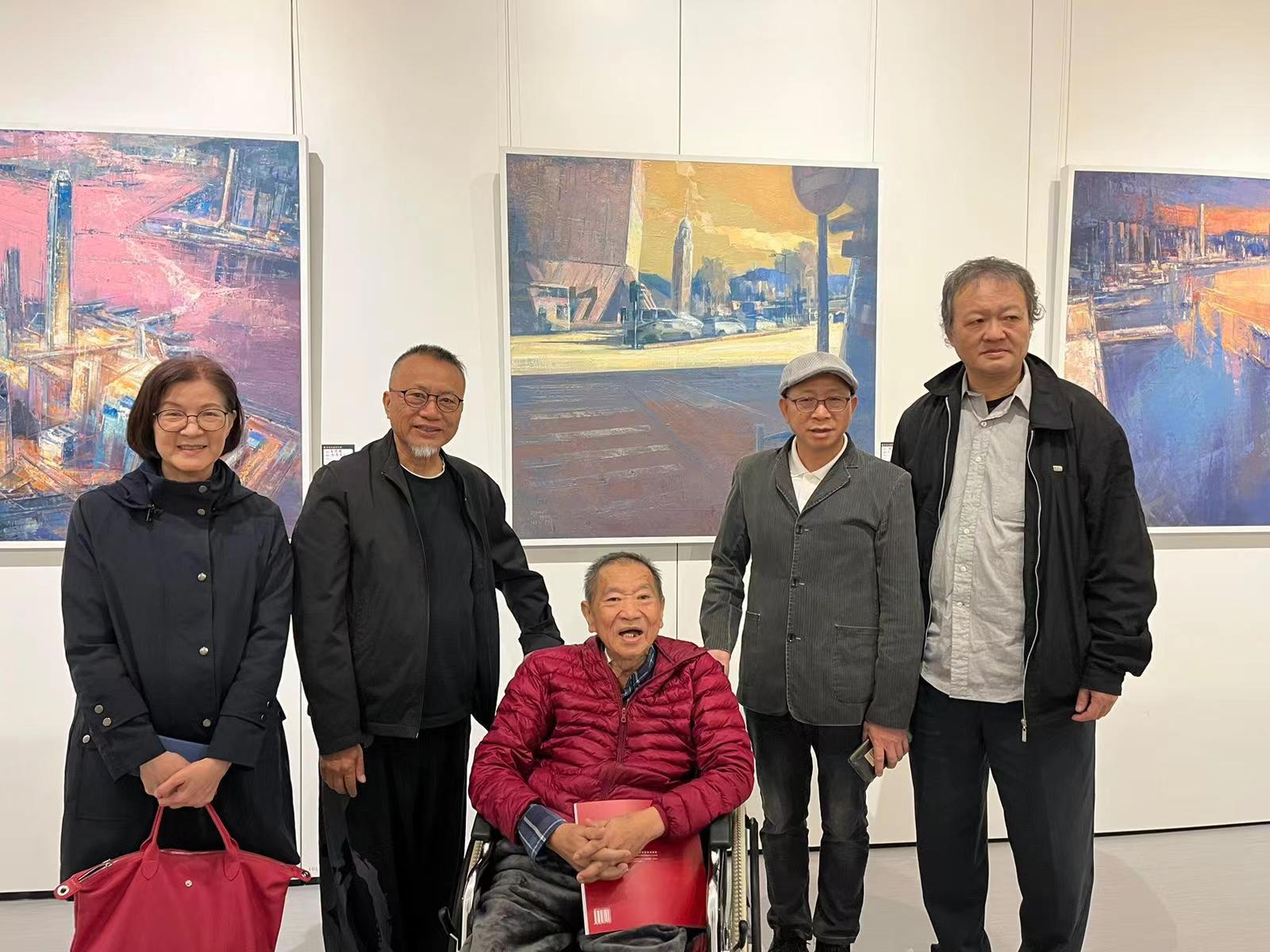 他身邊站著中央美術學院畢業的潘耀輝會長,是這個油畫大展的主辦者——香港油畫研究會。他深情的說,第一屆油畫大展是我們亞洲藝術基金會贊助的,是嗎?我都忘了,他說是真的!哈哈!太開心了。
