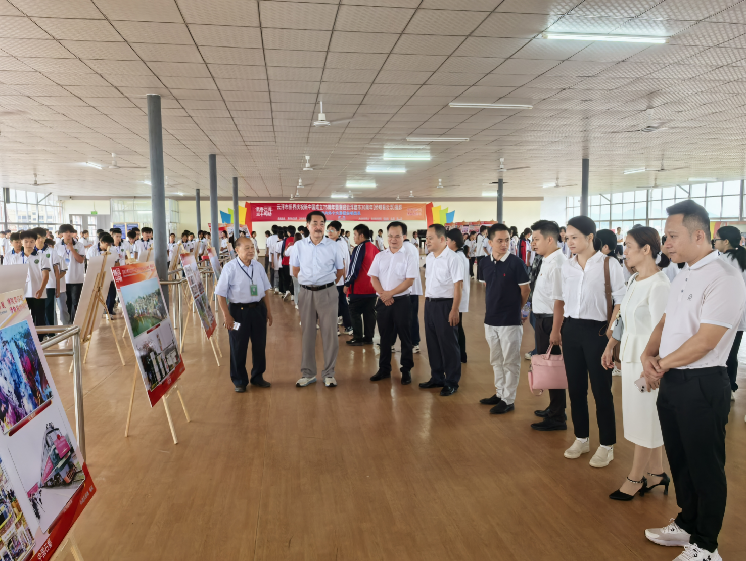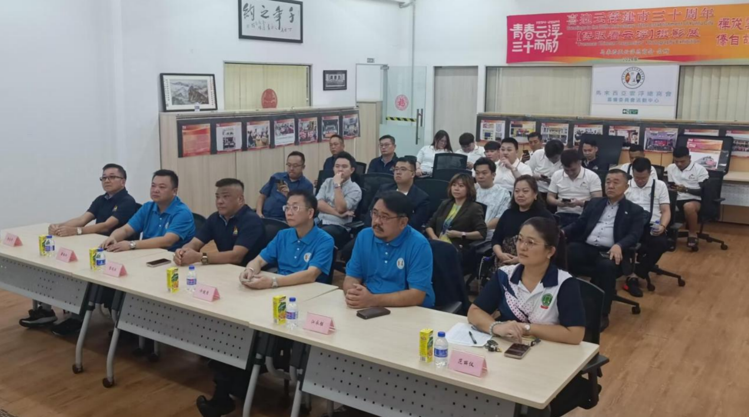 當天由美國雲浮僑胞聯合總會、韓國廣東陳氏宗親會、韓國余學英漢語學院、新加坡南洋新興會館、馬來西亞雲浮總商會、馬來西亞雲浮社團總會、馬來西亞新興雲浮會館、馬來西亞柔佛州瀧江公會與雲浮市僑聯等海內外僑團聯合舉辦的“青春雲浮 三十而勵——喜迎雲浮建市三十周年“僑眼看雲浮”攝影全球十大僑團聯展”同步開展,聯展以線下會場會所展板攝影圖片展示和線上電子圖片開展方式,展出經前期向海外僑胞、歸僑僑眷徵集優選的168幅攝影作品,開展以來共有38000多名海內外僑胞、僑眷和社會各界群眾觀看,以實際行動參加家鄉雲浮市慶祝新中國成立75周年暨喜迎雲浮建市30周年。
