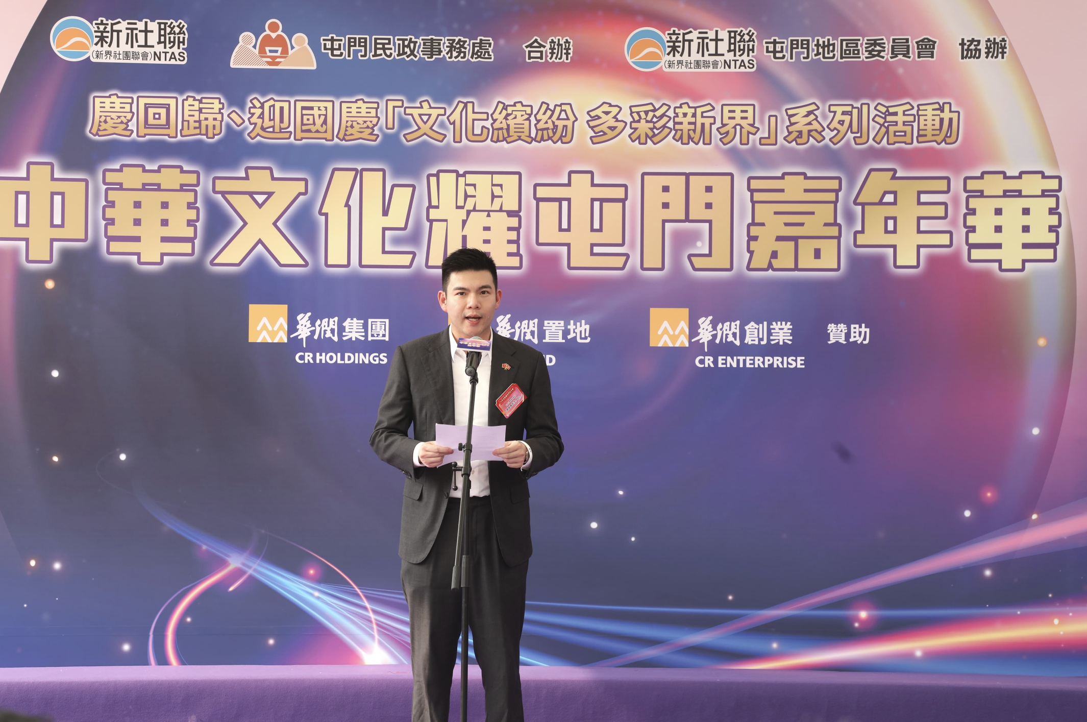 他對新社聯以文化為媒推出系列活動表示肯定,指出此次在屯門舉辦嘉年華,既有英歌舞、變臉等傳統特色表演,更有長達50米金龍展示、歷史展板和超過20米長的打卡裝置,生動展現傳統文化和現代結合的強大魅力,增強市民的文化自信,共賀國慶。