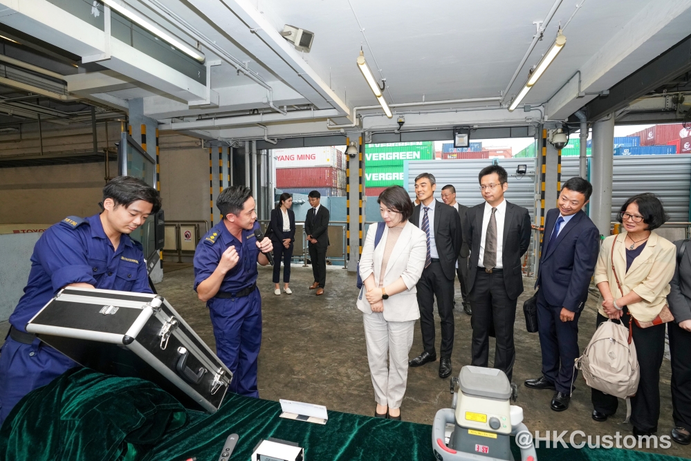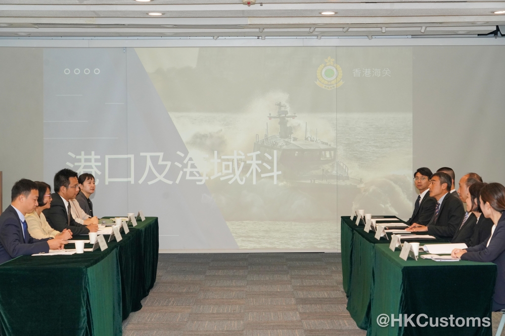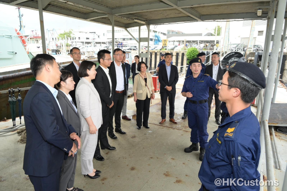 代表團與港口及海域科就加强粵港海關來往港澳小型船舶資料分析及深化海運物流監管合作進行了深入的討論,以提升風險管理能力,更有效打擊跨境海路走私活動。代表團更參觀了葵涌海關大樓驗貨場及海關船隊基地,及到內河碼頭和公眾貨物裝卸區進行考察,進一步了解香港海關海運貨運清關工作的情況。