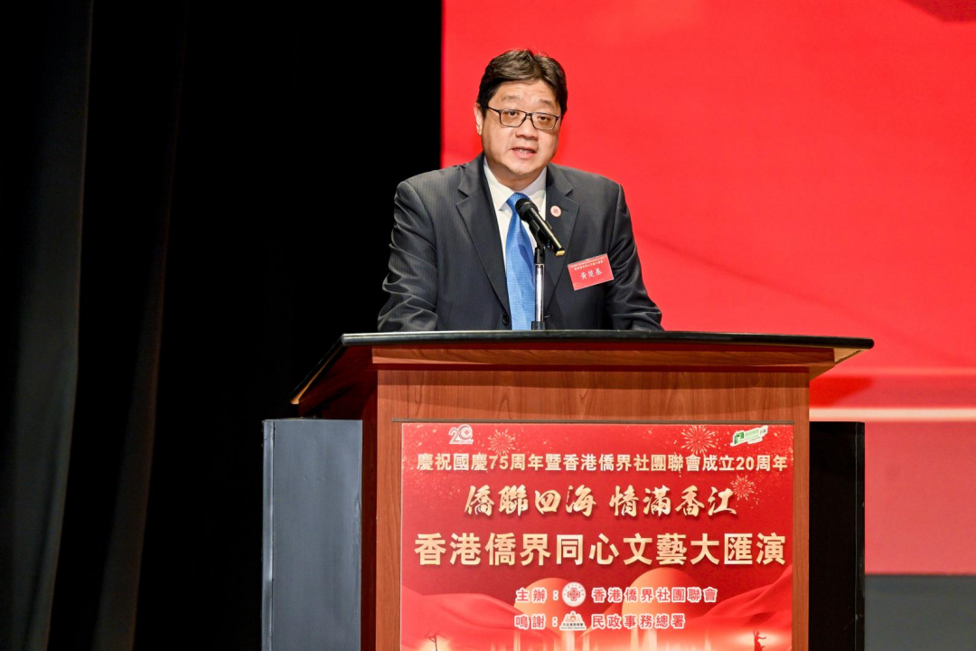 麥局長續說,民政及青年事務局和民政事務總署一直以來與僑胞團體和同鄉社團緊密合作,舉辦聯絡鄉誼和弘揚傳統文化的活動。她很感謝港僑聯會及各參與單位送上精彩的歌舞表演,讓社會各界一齊感受國慶的歡樂氣氛。她祝願港僑聯會會務竿頭日進。