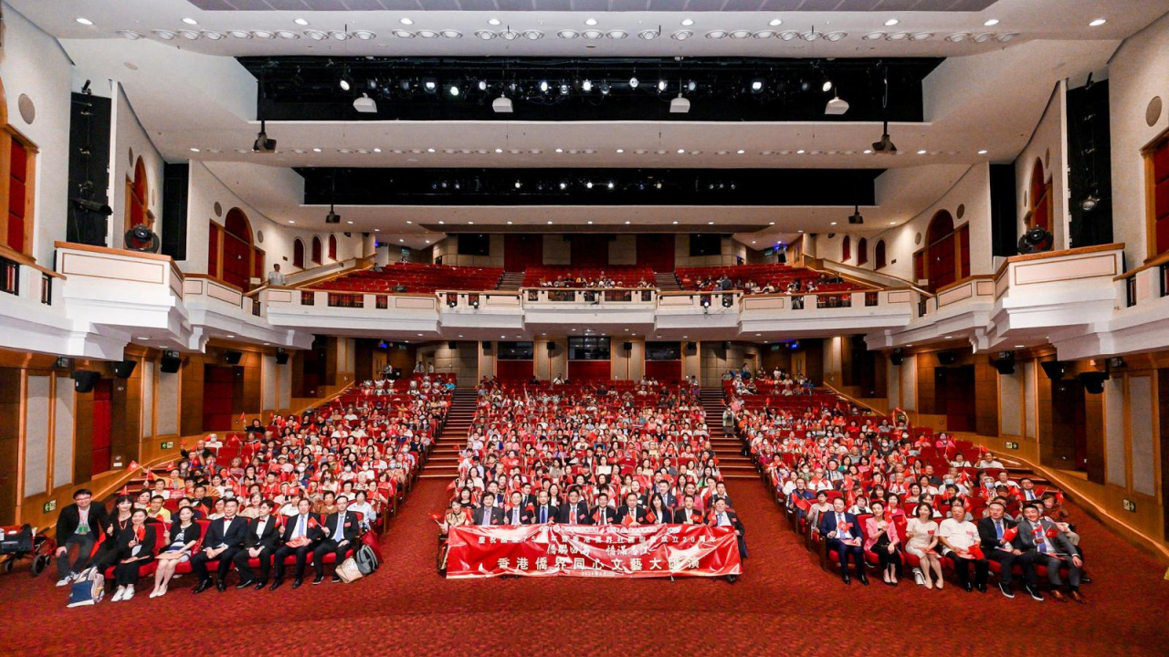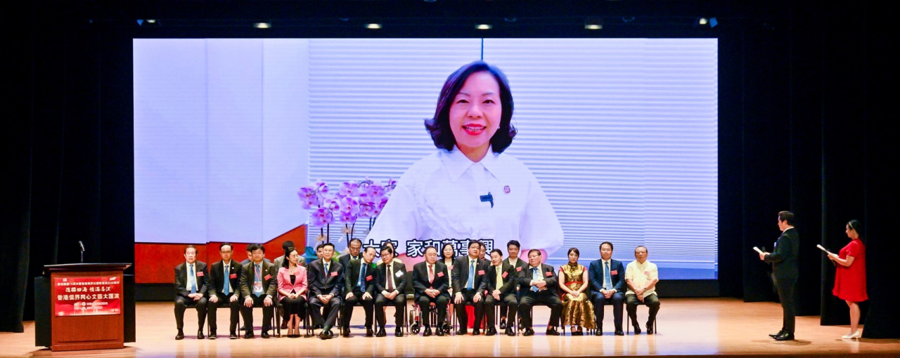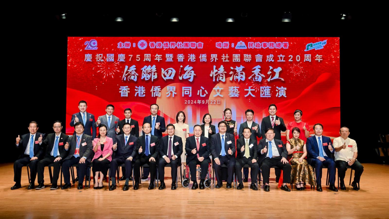 為慶祝中華人民共和國成立75周年、香港僑界社團聯會成立20周年,港僑聯會主辦的“僑聯四海 情滿香江”香港僑界同心文藝大匯演22日在理工大學賽馬會綜藝館上演。