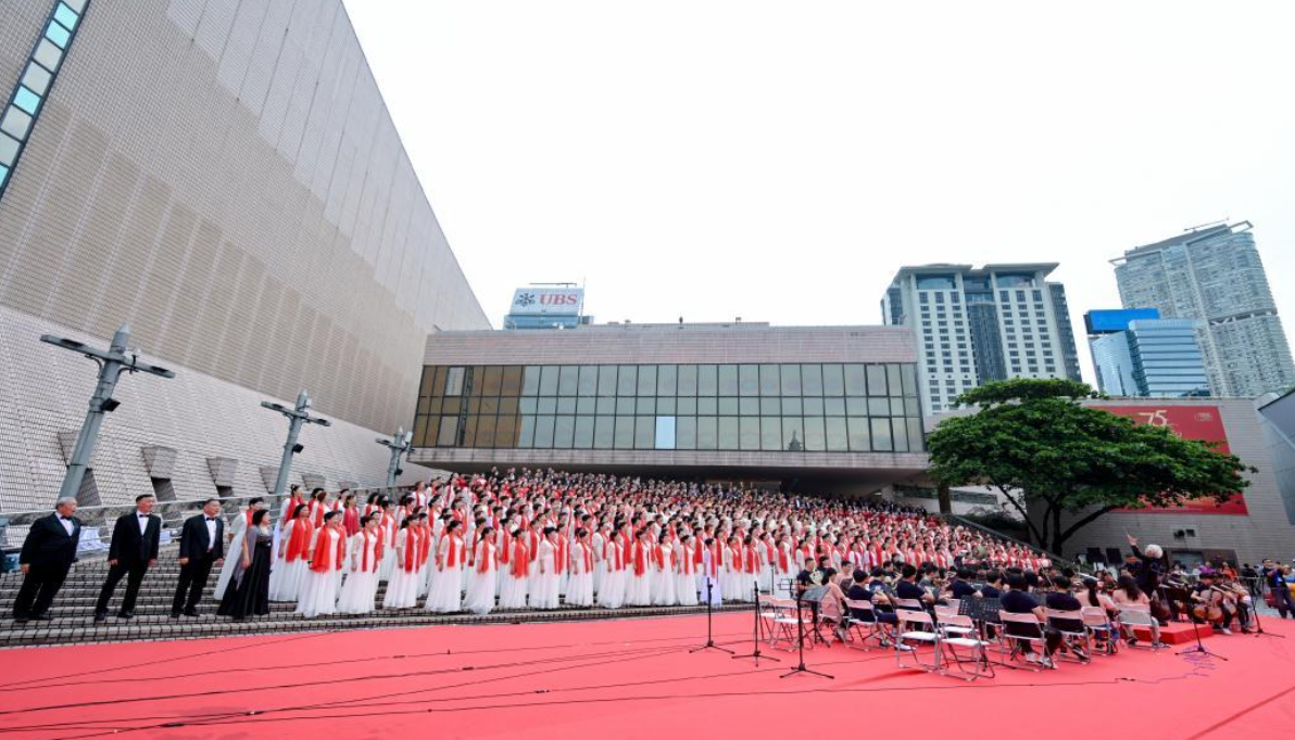 為慶祝中華人民共和國成立75周年,由香港青年愛樂樂團慈善基金會主辦,香港廣西社團總會合辦、廣州幸福晚晴發起、香港中國企業協會婦女委員會協辦的“慶祝中華人民共和國成立75周年 幸福唱中國·香港維港千人交響大合唱”活動,在香港特別行政區維多利亞港尖沙咀海濱隆重舉行。此次活動不僅是對祖國華誕的深情獻禮,也是全球華人共聚一堂,傳承經典,唱頌時代的盛舉。