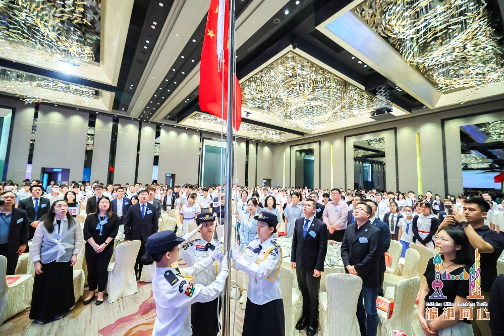 分享會在莊嚴肅穆的升國旗儀式中拉開序幕,全場人員起立,面向國旗,奏唱國歌,展現了青年學生對祖國的熱愛與尊敬。