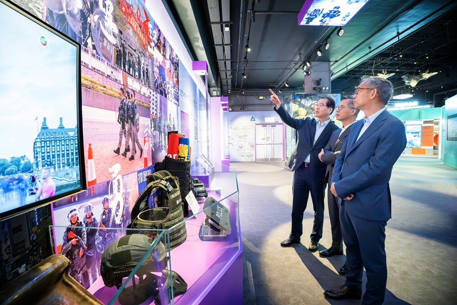 廉政專員胡英明9月5日在三號風球下,率領了廉署一眾首長級人員及高級人員,由維護國家安全委員會秘書長區志光陪同下參觀了“國家安全展覽廳”。