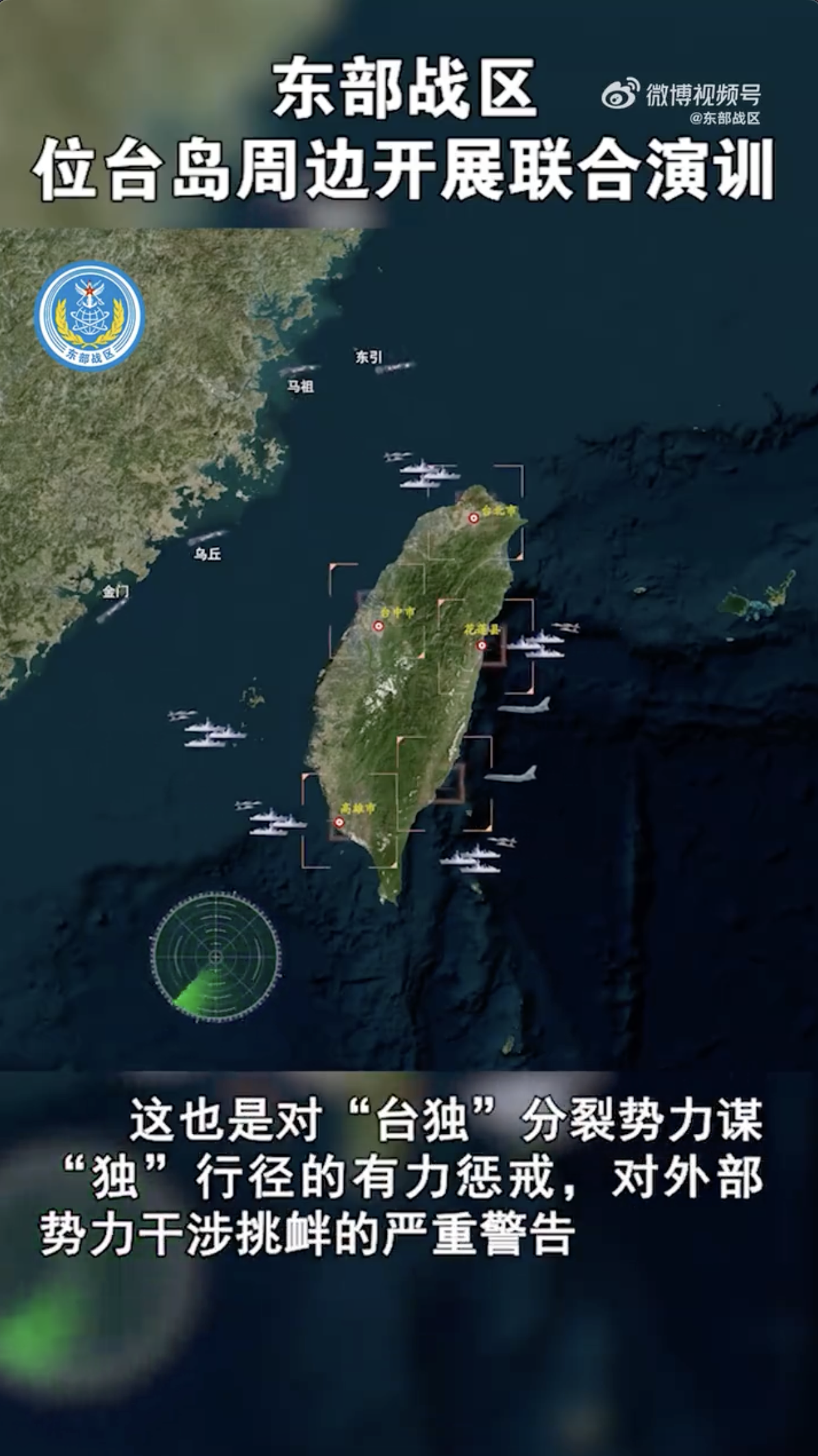 東部戰區發布多方向抵近台島和環外島戰巡演練模擬動畫。