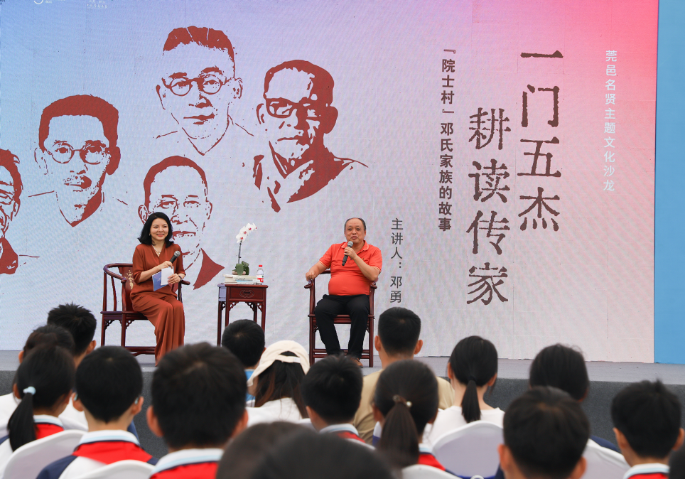 主會場舉辦首期莞邑名賢主題文化沙龍,由鄧氏後人代表鄧勇講述“耕讀傳家、一門五傑”的“院士村”鄧氏家族的故事。鄧勇是鄧盛儀之孫、鄧錫清之子,瑞典哥德堡大學金融專業博士。