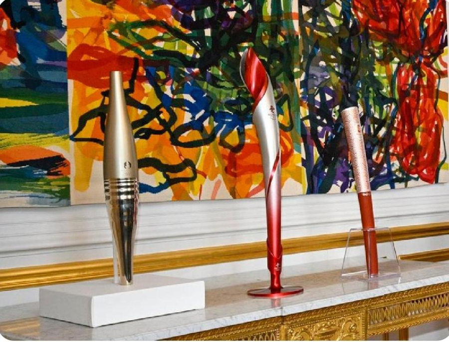 在法國愛麗捨宮一層肖像廳,三支奧運火炬並排而立,格外引人注目。這是中法兩國元首夫婦互贈禮品之一。