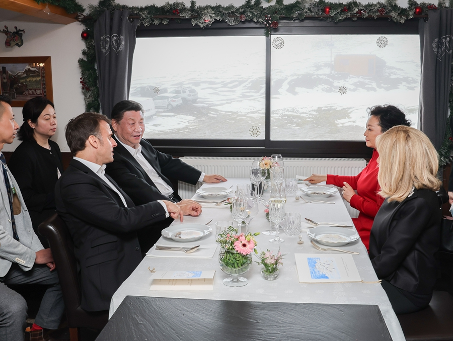 前一天,雙方發表4份聯合聲明,簽署綠色發展、航空、農業食品、商務、人文等領域近20項雙邊合作文件。此時在春雪紛飛、雲海浩渺中,兩國元首“不打領帶”溝通交流,加深彼此理解。此情此景,與兩國元首2019年的“尼斯夜談”、“豫園茶敘”,2023年的“鬆園會晤”,一脈相承。