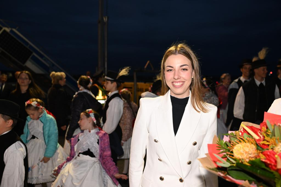 當習近平主席走下舷梯,一位女青年迎上前去獻上一束鮮花,高興地說:“習主席,歡迎您來到匈牙利!”