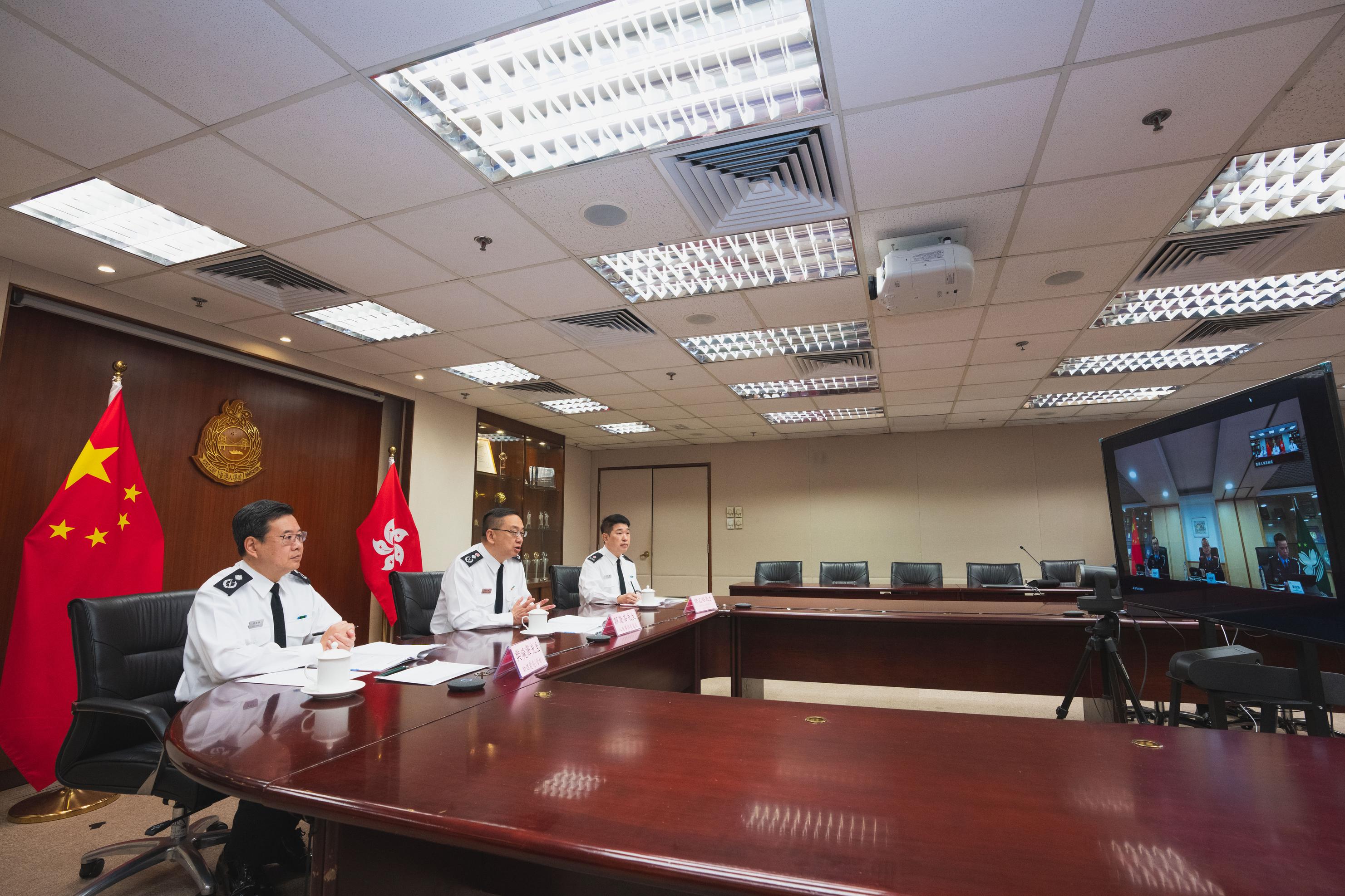 香港入境事務處處長郭俊峯昨日(12月5日)與澳門特別行政區治安警察局局長吳錦華就2023年區議會一般選舉投票日的出入境安排舉行視像會議。