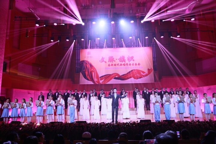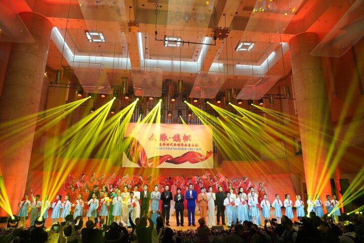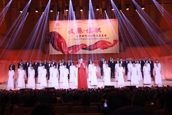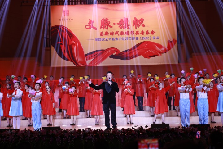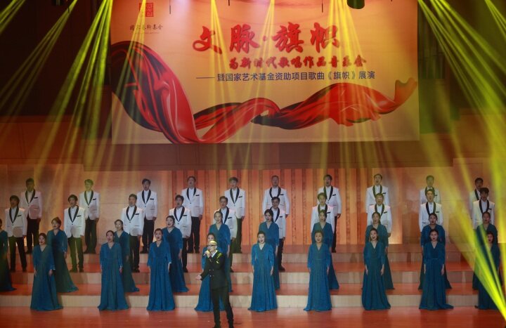 11月28日,“文脈·旗幟”——為新時代歌唱音樂會暨國家藝術基金資助項目歌曲《旗幟》展演在北京中山公園音樂堂上演。本場音樂會是繼《中國夢·絲路情》之後,連雲港市文聯在京上演的又一精品力作,展示了連雲港市文藝家多年來積累的創作成果,展現了他們緊跟時代步伐、唱響時代主旋律的精神追求和使命擔當。同時,本場音樂會也是國家藝術基金資助項目歌曲《旗幟》規定三場展演中的第三場。中宣部、中國文聯、中國作協等相關負責人以及連雲港市人民政府領導出席音樂會。