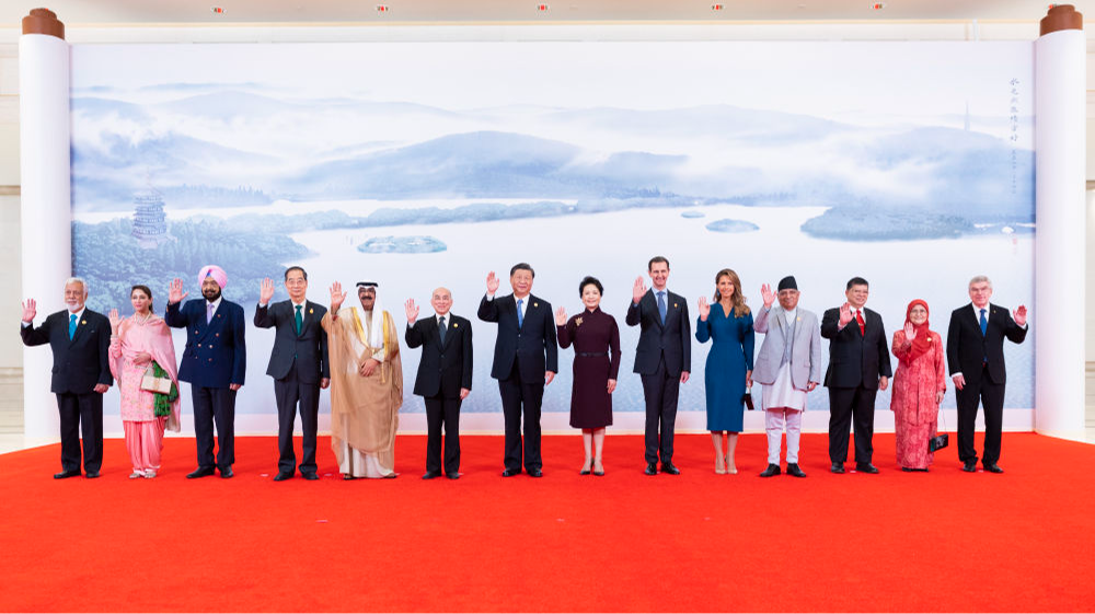 習近平發表致辭,代表中國政府和中國人民對來華出席杭州第19屆亞運會開幕式的國際貴賓表示熱烈歡迎。