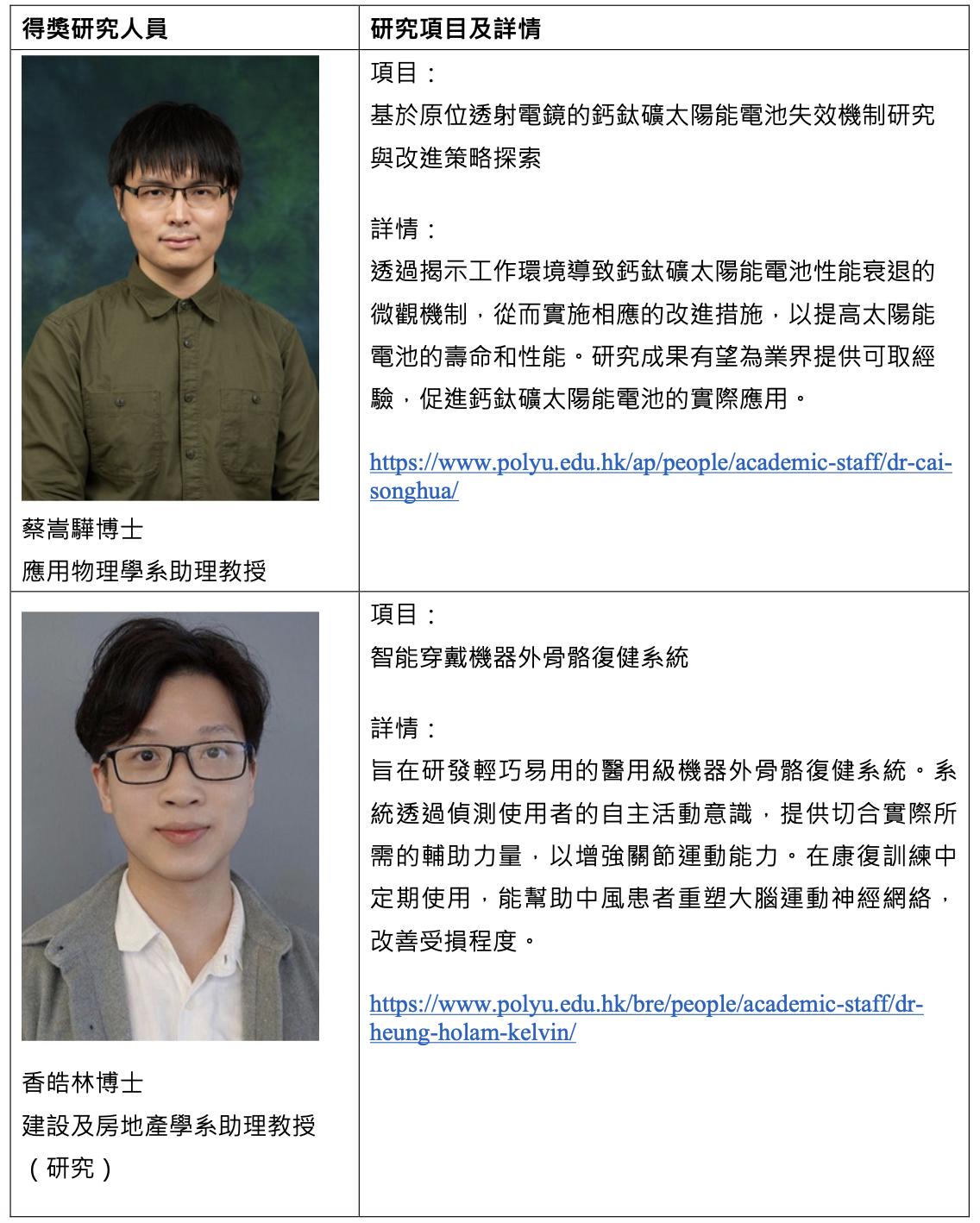 他們的科研成果有助構建可持續的未來和改善人類生活, 充分展示了理大一直以卓越研究為社會需求提供解決方案的實力。