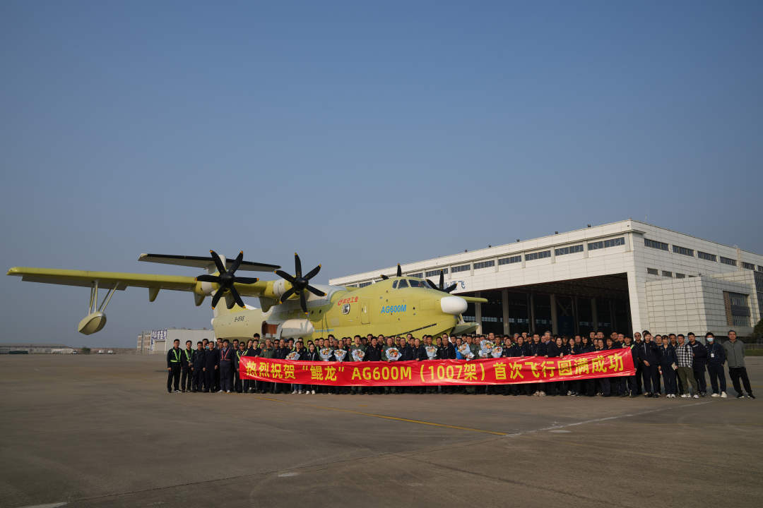 8時9分,由機長陳明、副駕駛安瑞、空中機械師張朋飛和機上觀察員田亞飛組成的首飛機組,駕駛著AG600M飛機從珠海金灣機場滑行起飛,在空中平穩飛行17分鐘,完成一系列既定試飛科目後,於8時26分平穩降落,飛機狀態良好,操縱系統正常,各系統運行穩定。