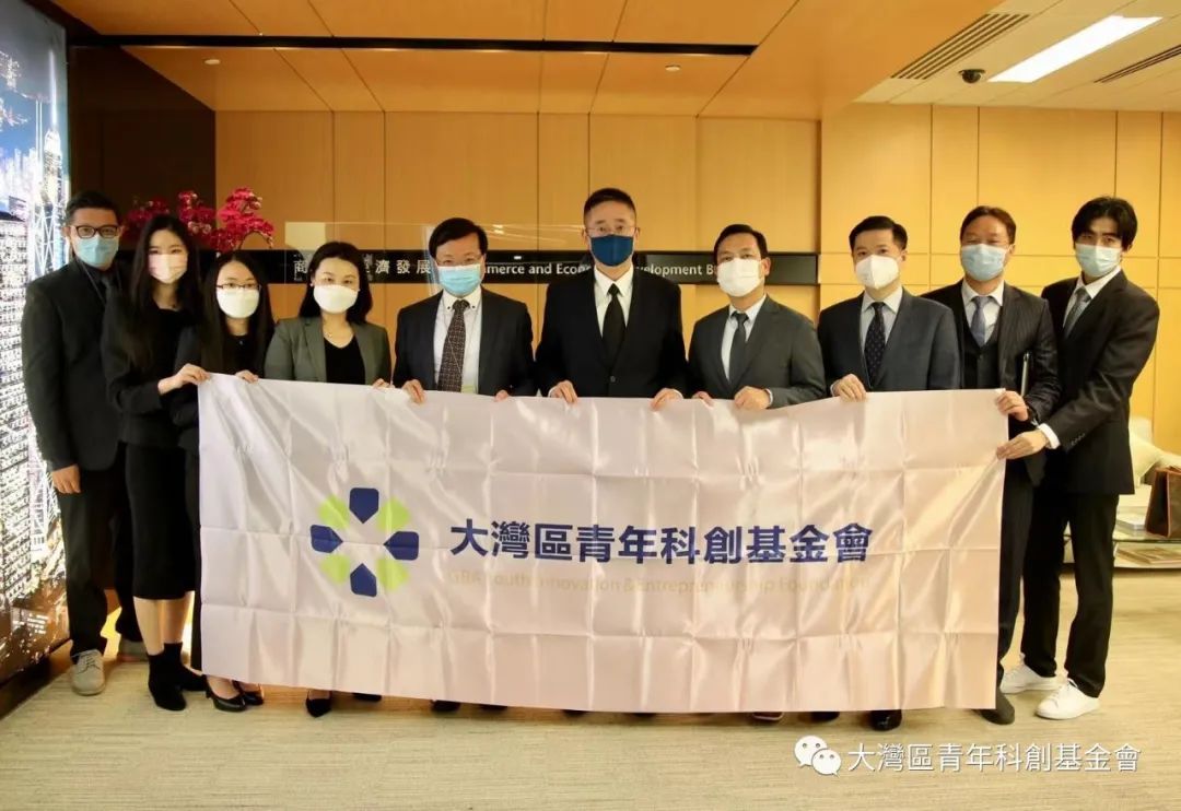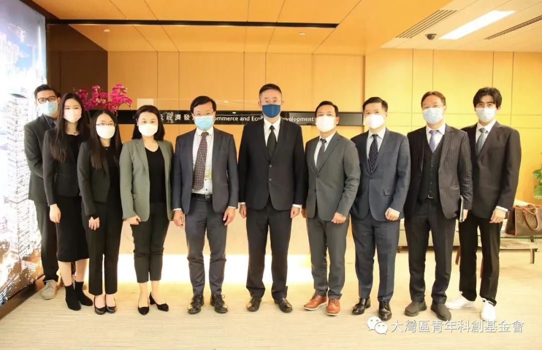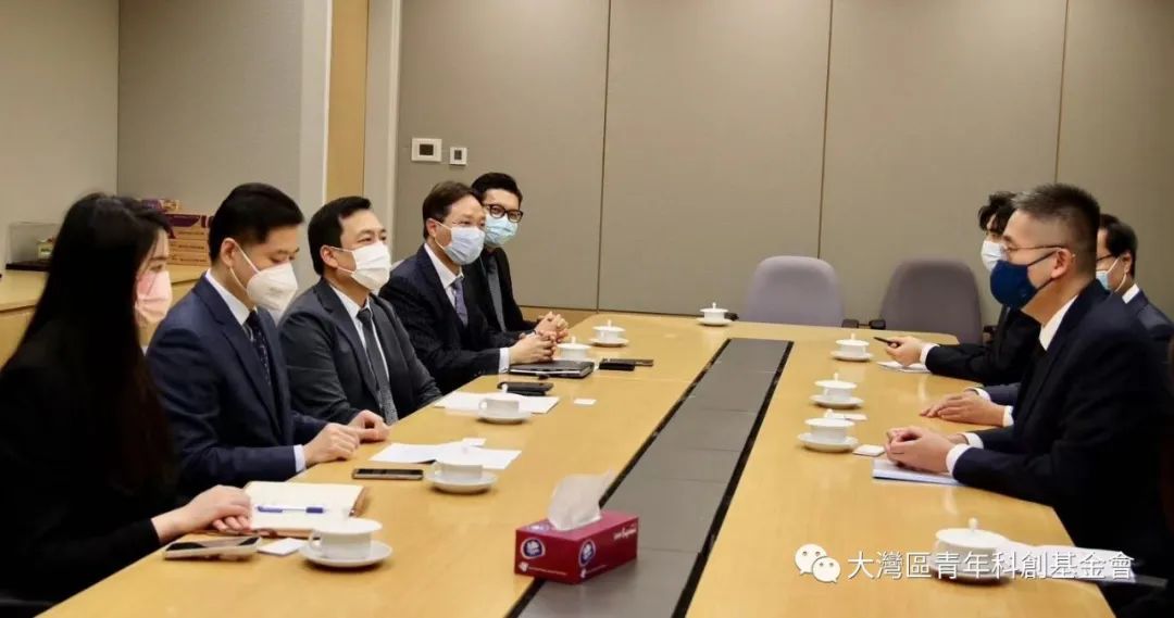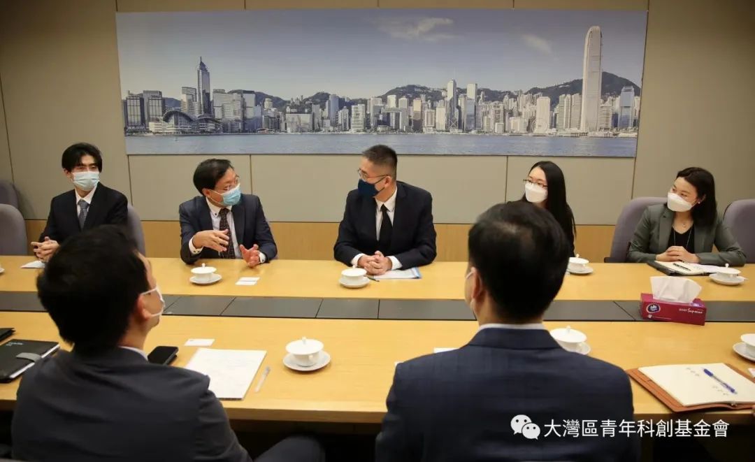 2022年12月6日上午,大灣區青年科創基金會名譽會長楊磊明、創會會長林知、會長林培聰帶領青創會團隊拜訪了香港商務及經濟發展局,與副局長陳百里博士進行了近兩個小時的座談。