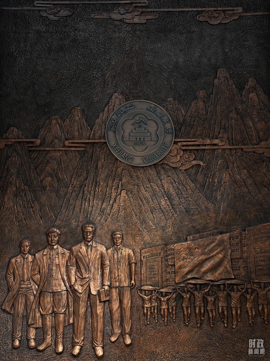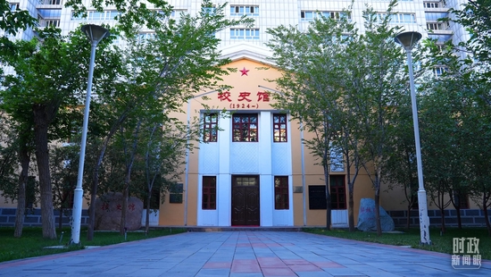 沿這條路前行,有一棟蘇式黃色二層小樓,是新疆大學校史館。校史館序廳,展示著俞秀松、林基路等共產黨人的浮雕銅像。 “流金歲月”“紅色傳承”“堅守陣地”等展廳,陳列著見證新疆大學近百年奮鬥歷程的珍貴史料。