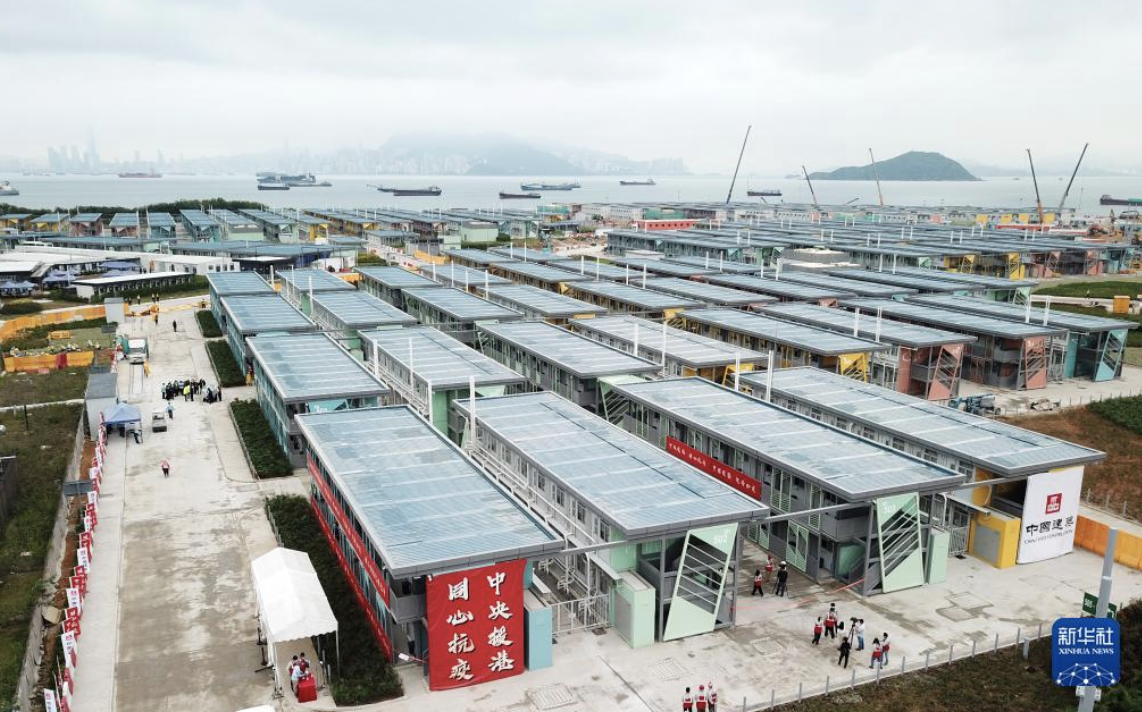 歷經兩個月的緊張建設,中央援建香港的竹篙灣社區隔離治療設施第一階段工程19日完工交付。當天交付使用的首批設施有逾1000個房間,涉及逾2000個床位。