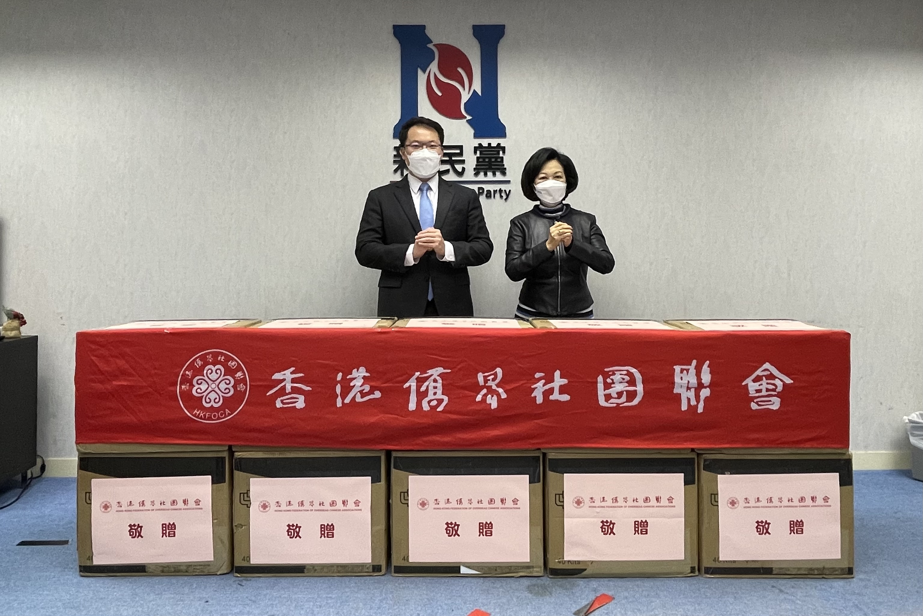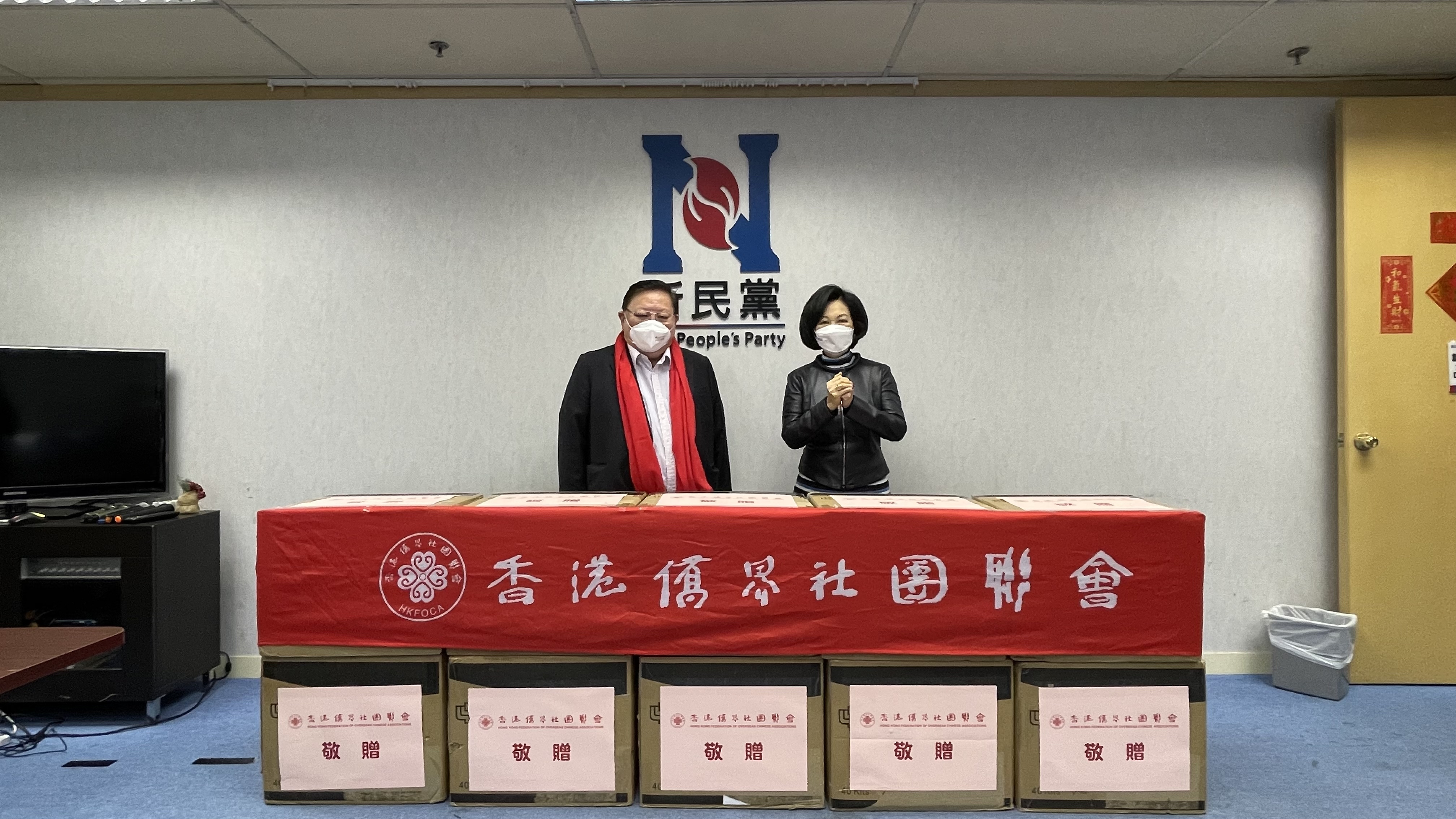 支援社區抗疫,香港僑界在行動。3月10日中午,香港僑界社團聯會常務副會長王錦彪,常務副會長兼秘書長廖宇軒及僑界青委義工代表拜訪香港新民黨灣仔總部,並送上13箱共5,000盒新冠病毒檢測包等抗疫物資。