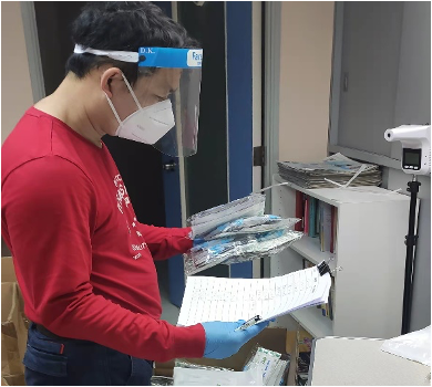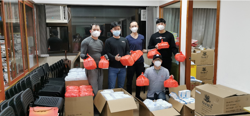 義工們團結一致,不辭辛苦,在作足安全措施下,密切配合,分工合作。一部分義工專門負責運輸、包裝防疫物資,及負責在會所派發,或負責速遞派送,或負責在地鐵站交收,或親自將防疫物資送到确診者家門前,讓確診者能在家安心隔離休息,以期儘快戰勝病毒。