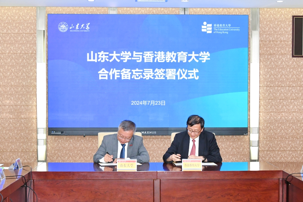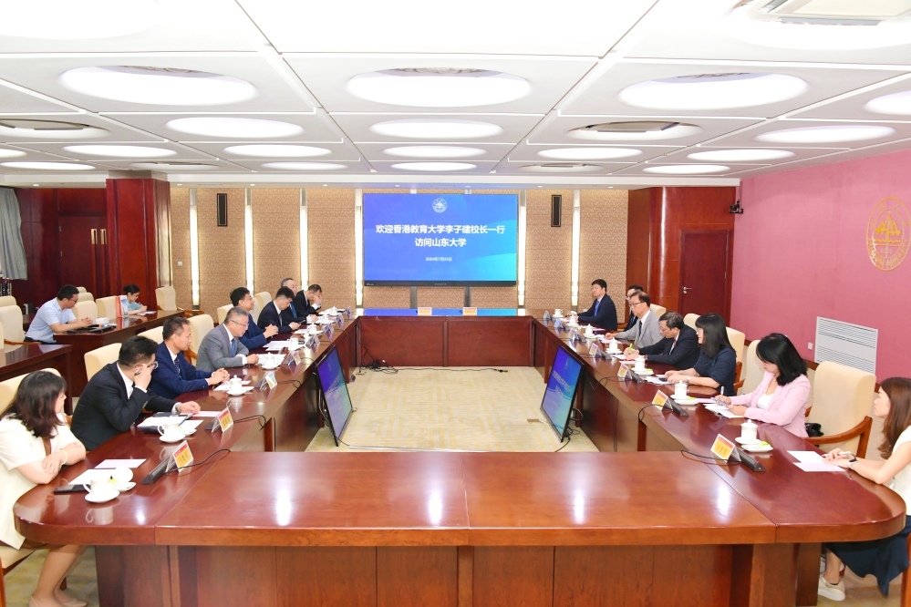 香港教育大學(教大)校長李子建教授率教大代表團一行於7月23日到訪山東大學(山大),受到山大黨委書記任友群的熱情接待;在親切友好的氣氛下,雙方就教育領域的深度合作交換意見,深入探討;雙方並簽署合作備忘錄,將進一步加強兩校在教育研究、學術交流、國際合作、學生交換等方面的合作。