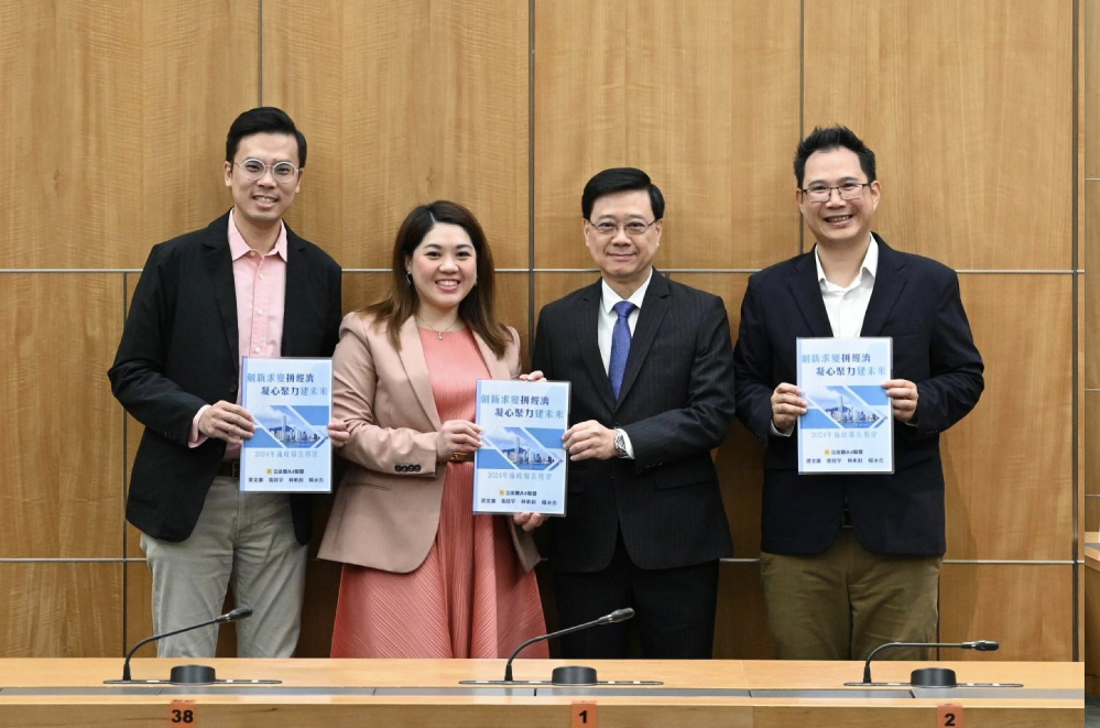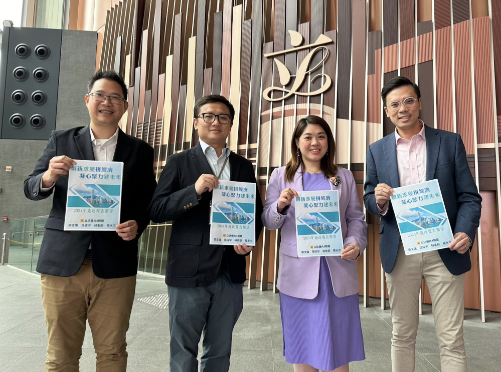 立法會“A4聯盟”楊永杰、梁文廣、張欣宇、林素蔚今日(24日)會見行政長官,提交以“創新求變拼經濟 凝心聚力建未來”為主題的《2024年施政報告期望》,涵蓋文體旅遊、土地房屋、運輸基建、攜老扶幼、青年上流、醫療健康和環保減廢等七大範疇共52項建議。“A4聯盟”期望特區政府繼續秉持“以結果為目標”的施政理念,敢於擔當,帶領社會各界共同努力,發揮創新求變精神,利用香港“一國兩制”最大優勢,持續鞏固和提升“八大中心”地位,為香港源源不斷注入強勁發展動能,令由治及興的前景更加光明,社會、經濟、民生等各方面都迎來廣闊及多元的發展空間和機遇。