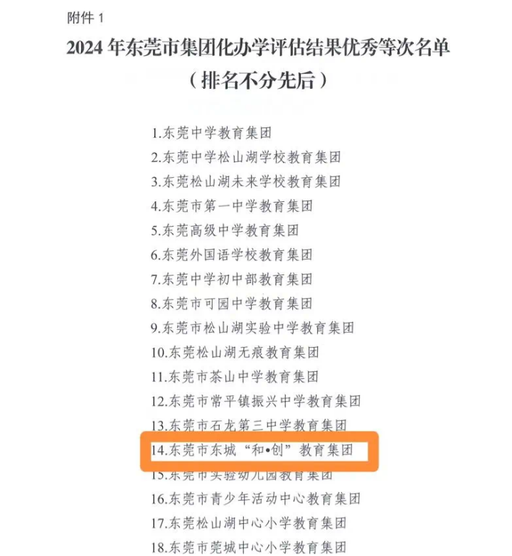 獲評2024年東莞市優秀教育集團,既是對東城“和∙創”教育集團一年來發展的高度肯定,也是對东城集團化辦學的一種鞭策。東城“和∙創”教育集團將繼續與東莞集團化辦學工程同頻共振,辦優質教育集團,走高質發展之路。