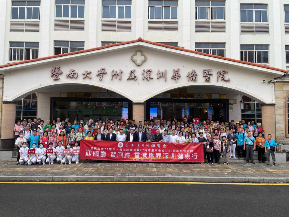 香港僑界社團聯會(簡稱:港僑聯會)昨日一連兩天舉辦“迎國慶 賀回歸 香港僑界深圳健康行”,出席活動的該會領導和僑友共約200人。全國政協委員、中國僑聯常委、該會會長黃楚基說:“今年是中華人民共和國成立75周年、香港回歸祖國27周年,適逢本會成立20周年紀念。為關顧老歸僑身體健康狀況,我們組織今次的健康行,作為慶祝本會成立20周年系列活動的頭炮活動。”深圳市委統戰部副部長、市僑辦主任、市僑聯主席人選劉昕和中聯辦協調部陳澤濤副部長亦出席活動。