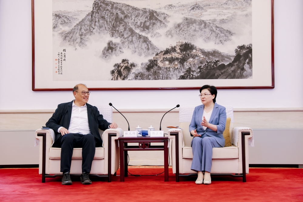 江蘇省委常委、南京市委書記韓立明女士(右)對本次合作給予高度關注,並與理大校董會主席林大輝博士(左)一行進行會談。