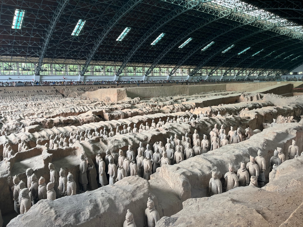 “秦俑隨無名,但千人千面,他們以血肉之軀安天下,護萬里河山。豈曰無名,河山即名”。最後一站,研學團來到秦始皇兵馬俑博物館。一進門,同學們都被 “世界八大奇蹟” 兵馬俑的壯觀所吸引。彷彿時空重疊,跨越千年。參觀完之後,同學們又親手體驗了兵馬俑的手工製作。製作完之後,同學們深有感觸,紛紛感嘆古蹟工作人員修復工作的不易,同時也對建立兵馬俑的古人肅然起敬。