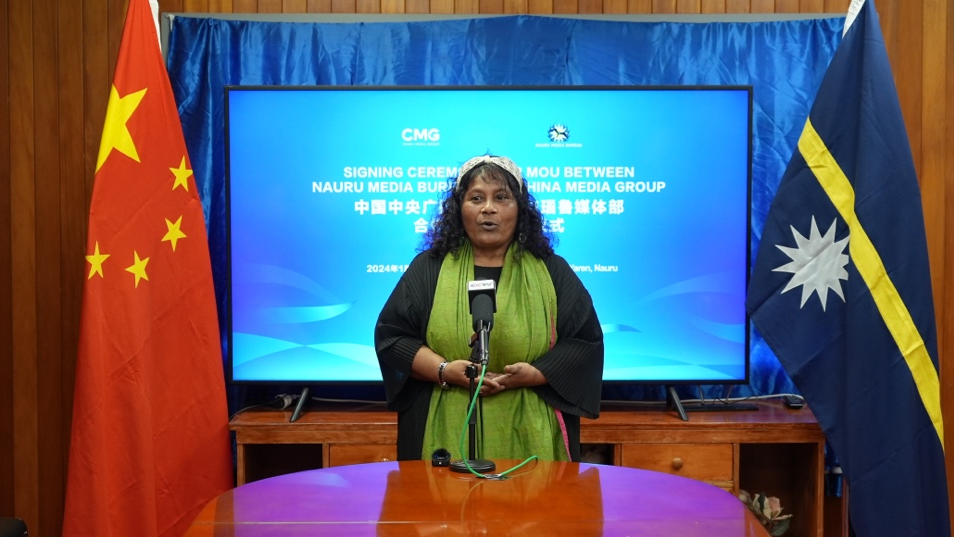 中央廣播電視總台亞太總站副站長李風表示,中國與瑙魯的友誼源遠流長、跨越山海。總台在瑙魯政治中心亞倫區設立記者站,並與瑙魯媒體部簽署媒體合作備忘錄,標誌著中國與太平洋島國建立媒體合作機制的一個新開端。總台願同瑙魯媒體一道,在促進互信、加深理解、凝聚共識、傳播友誼方面共同努力,攜手開創中瑙兩國媒體合作新局面。