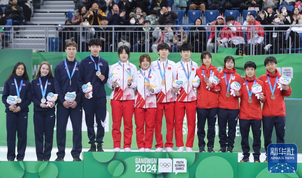 1月24日,在韓國江陵舉行的2024年江原道冬青奧會短道速滑混合團體接力A組決賽中,由李金恣、楊婧茹、張柏浩和張心喆組成的中國隊以2分46秒516的成績奪得冠軍。