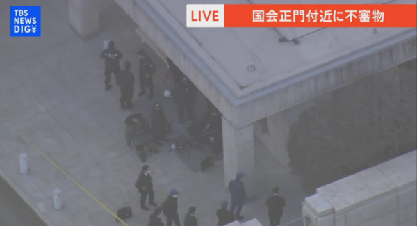 據日本富士新聞網報道,日本國會議事堂正門9日發現疑似爆炸物,警方出動爆炸物處理小組應對。