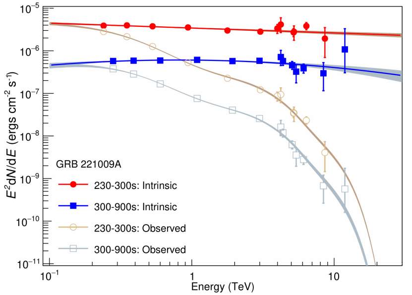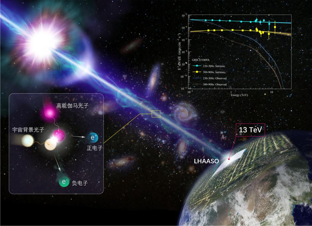 科學家利用我國高海拔宇宙線觀測站“拉索”(LHAASO),精確測量了迄今最亮伽馬暴GRB 221009A的高能輻射能譜,並據此獲得了對伽馬暴的全新認知。