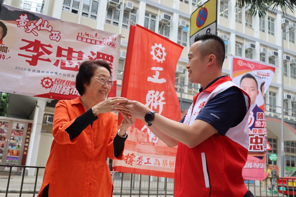 工聯會黃大仙西選區參選人李忠澤昨日(8日)在街頭舉行拜師儀式,拜工聯會會務顧問陳婉嫻為師。李忠澤表示,陳婉嫻過去為許多打工仔、基層市民發聲,為他的服務社會的生涯指引了方向,也是他的事業起點,“以往工作接觸到每個個案有關的社區規劃背後,是一個家庭乃至社區的幸福生活,這足以成為我擔任區議員,並為之奮鬥終生的理由。”