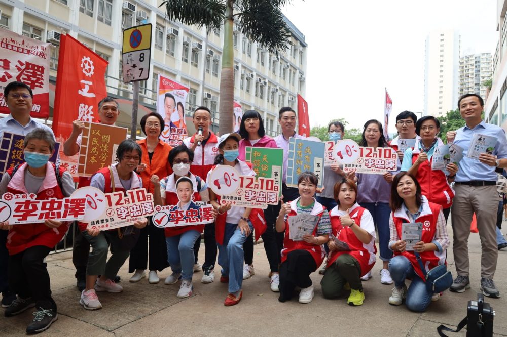 現場約20人為李忠澤助威吶喊。在香港土生土長的李忠澤表示,自己從小到大都很好奇究竟是什麼工作可以促使人為了單一而核心的事業去奮鬥終生。大學畢業後,他擔任時任立法會議員陳婉嫻的議員助理,在工作期間每個月都接到逾百宗個案求助。每做一次與社區規劃有關的內容,幫助了許多基層家庭與市民,都令他感到很有意義,服務市民的目標逐漸扎根在他的心中,故決定參選區議會,“我會用自己的能力告訴市民,將做地區服務這條路走下去。”
