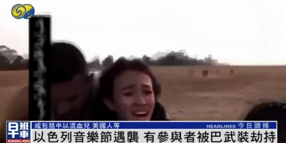 社交媒體片段顯示,名叫諾亞的以色列女孩和她的男友被巴勒斯坦武裝分子劫持。