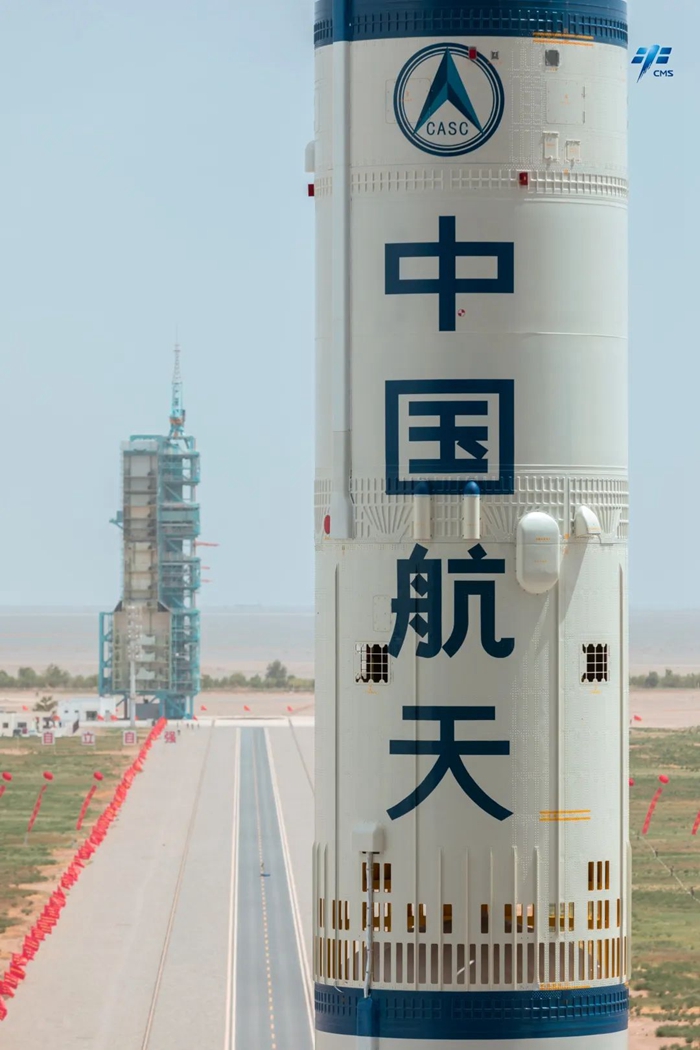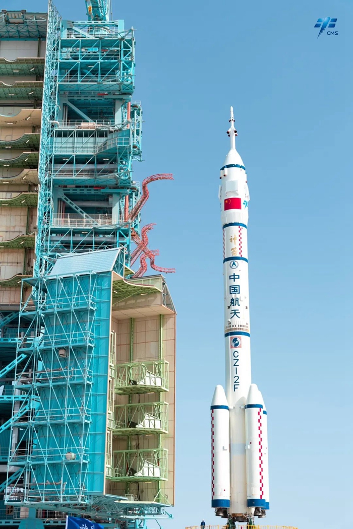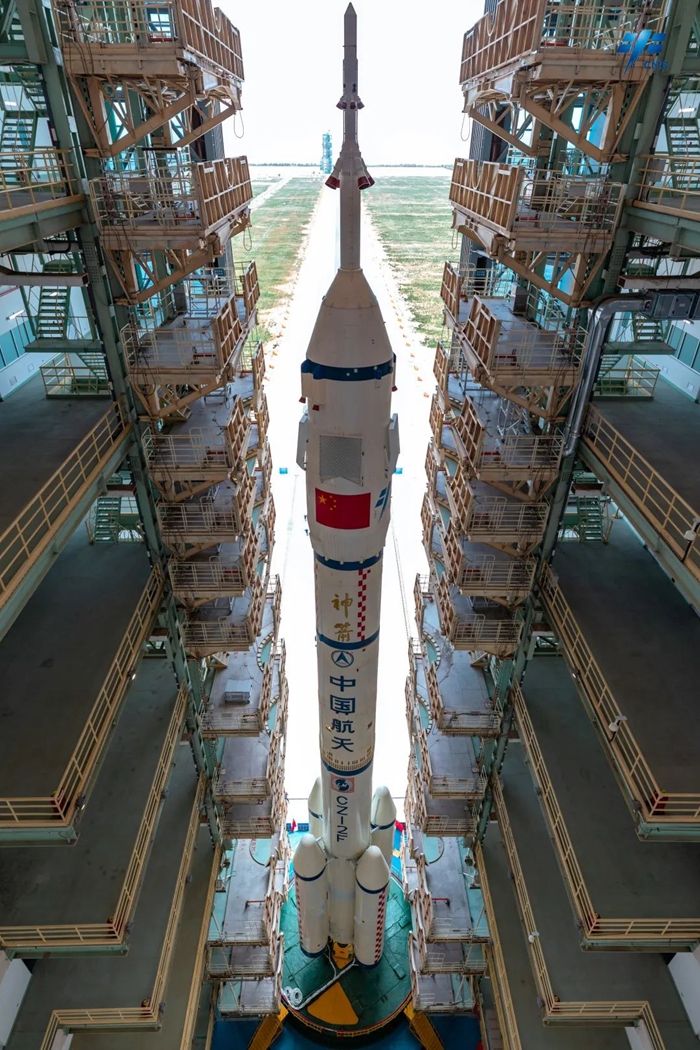 神舟十六號載人飛船與長征二號F遙十六運載火箭組合體已轉運至發射區。“神十六”就位!快來感受它的恢宏氣勢吧!