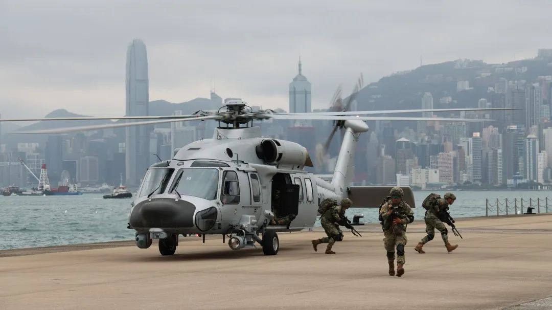 上午9時,昂船洲軍港上空警鈴驟響,接到出動命令後,駐香港部隊海軍艦艇緊急備戰備航,搭載特戰小隊駛離軍港。與此同時,空軍兩架直升機也從石崗營區緊急升空,協同執行此次海空聯合巡邏任務。