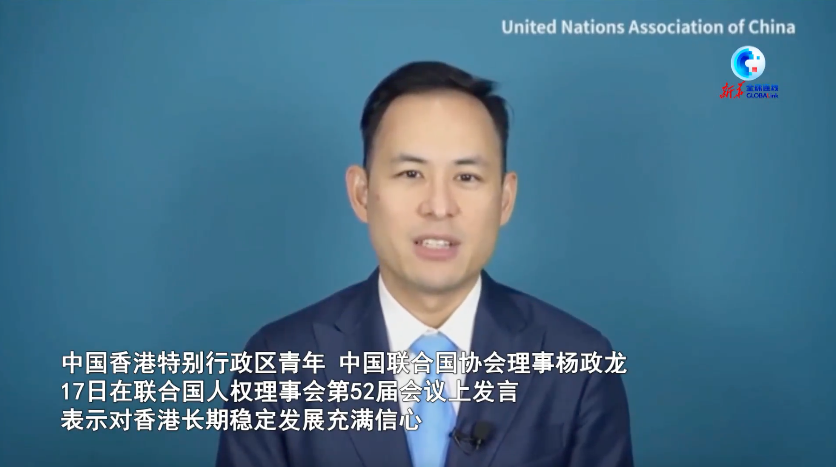 中國香港特別行政區青年、中國聯合國協會理事楊政龍17日在聯合國人權理事會第52屆會議上發言,表示對香港長期穩定發展充滿信心。