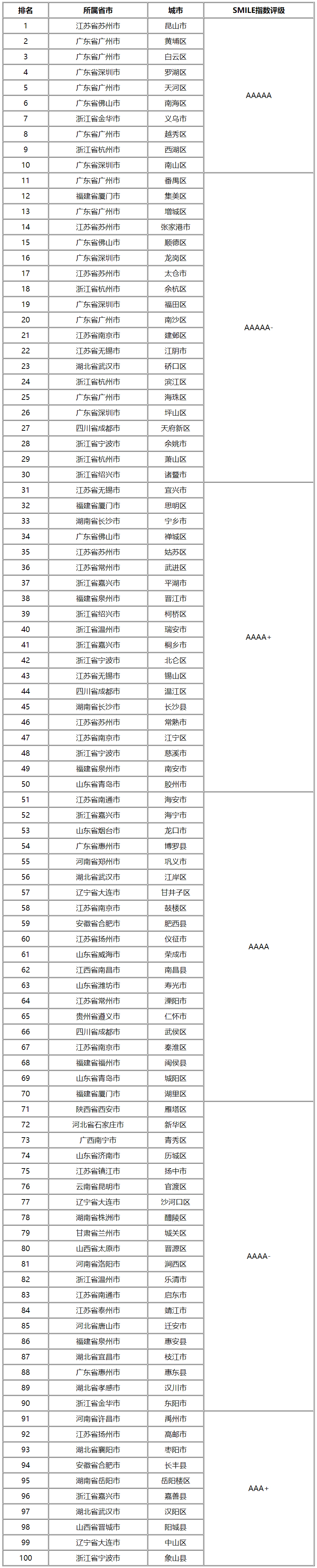 2021-2022年中國新型智慧城市建設與發展綜合影響力百強區縣榜推薦主要參考全球微笑智慧城市參考模型(Tahaoo SMILE CITY)“S”“M”“I”“L”“E”五大核心一級指數以及十二個二級指數進行綜合評測得出,2021-2022年度中國新型智慧城市建設與發展綜合影響力百強區縣榜(簡稱:2021-2022年度中國新型智慧城市百強區縣榜),具體如下: