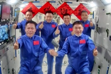 據中國載人航天工程辦公室消息,在載人飛船與空間站組合體成功實現自主快速交會對接後,神舟十八號航天員乘組從飛船返回艙進入軌道艙。北京時間2024年4月26日05時04分,在軌執行任務的神舟十七號航天員乘組順利打開“家門”,歡迎遠道而來的神舟十八號航天員乘組入駐“天宮”。隨後,兩個航天員乘組拍下“全家福”,共同向牽掛他們的全國人民報平安。