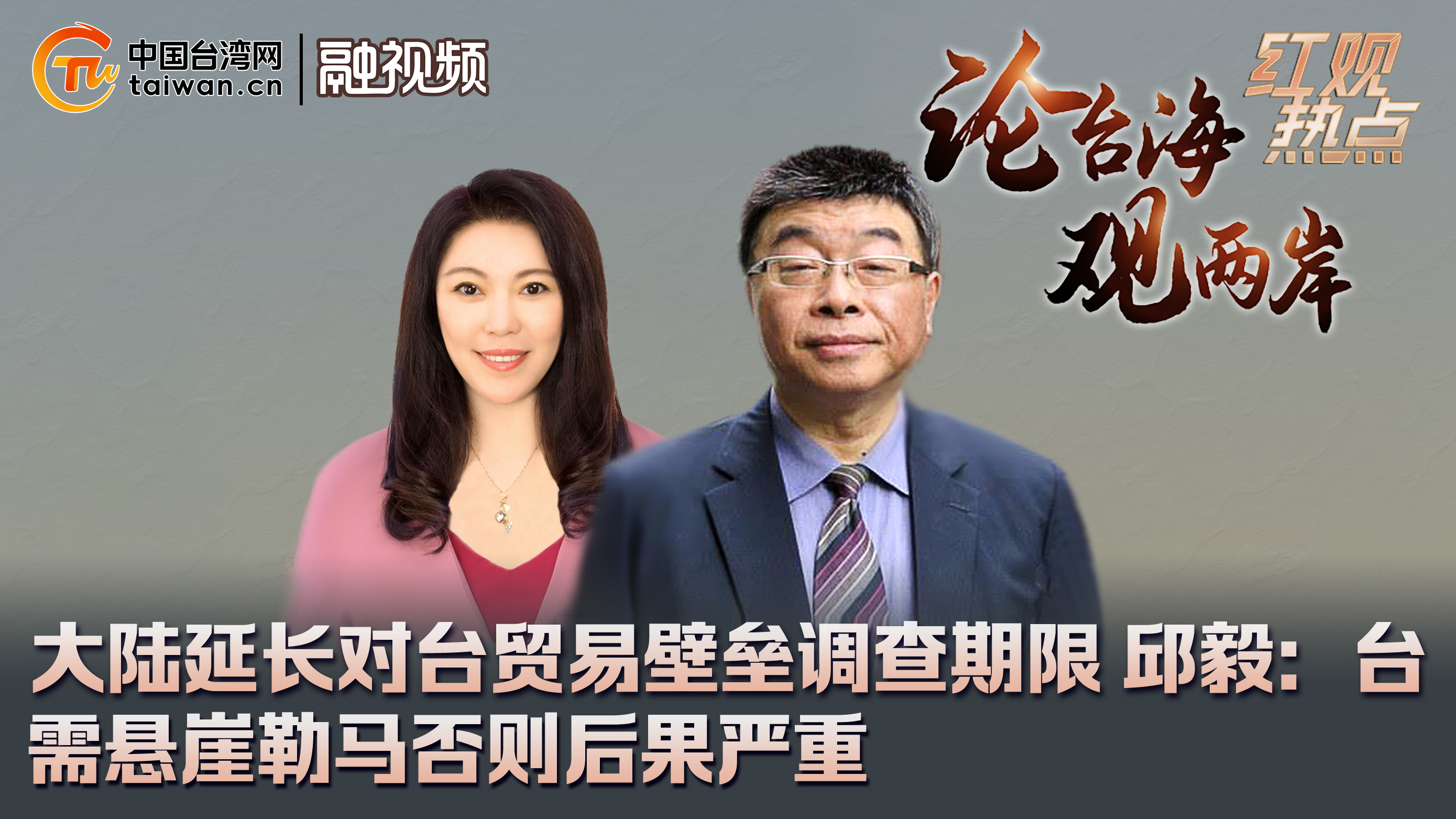 10月9日,商務部宣布對台貿易壁壘調查延長三個月,台灣時事評論員邱毅對此表示,台灣還有機會懸崖勒馬,否則後果嚴重。