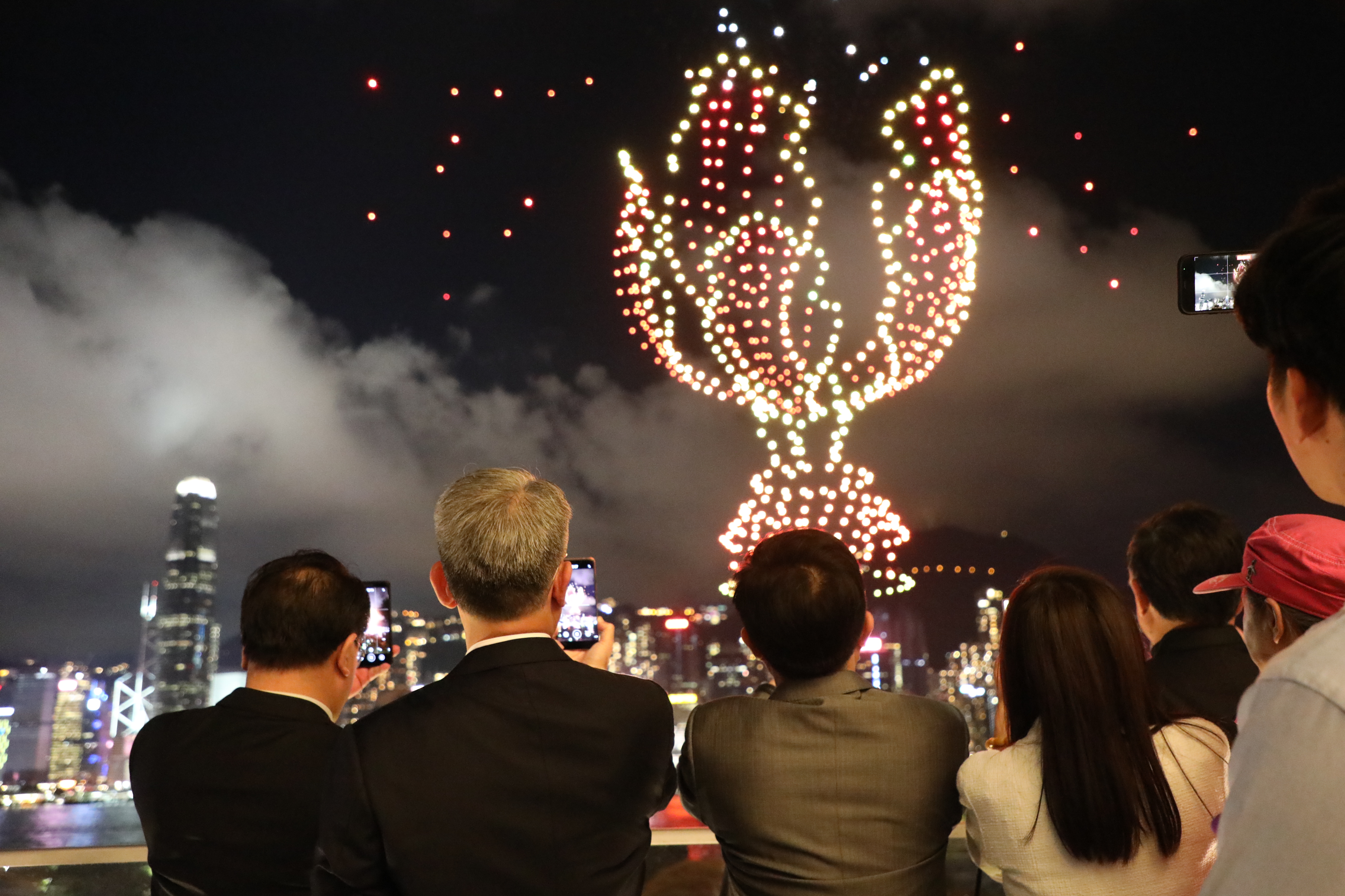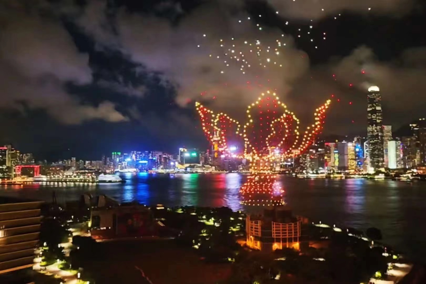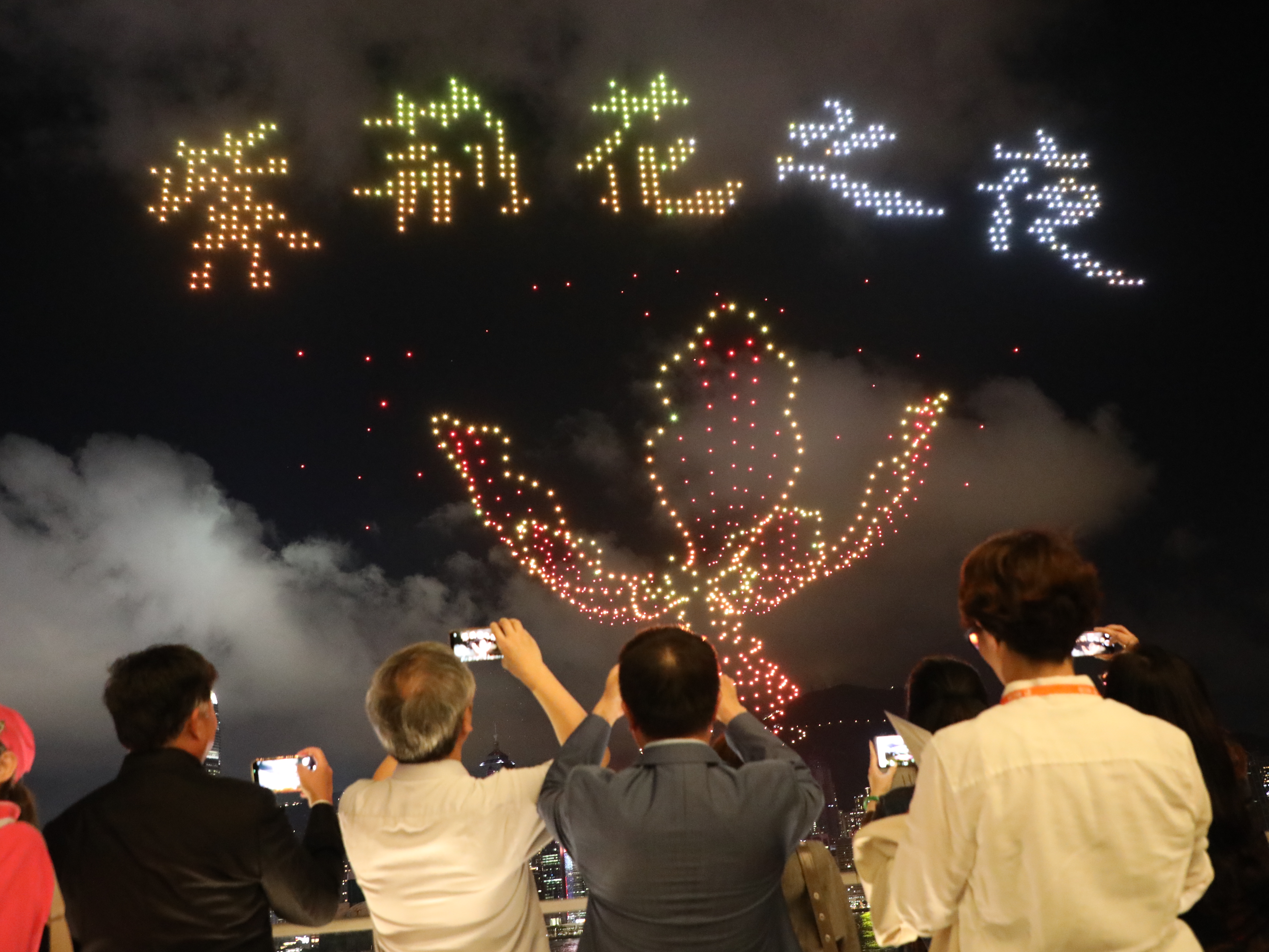 “色彩太漂亮了”“粽葉好大好大”“畫面很震撼”,機隊緩緩落下,掌聲歡呼聲響成一片,維港兩岸變成歡樂的海洋,許多人久久不願離去。