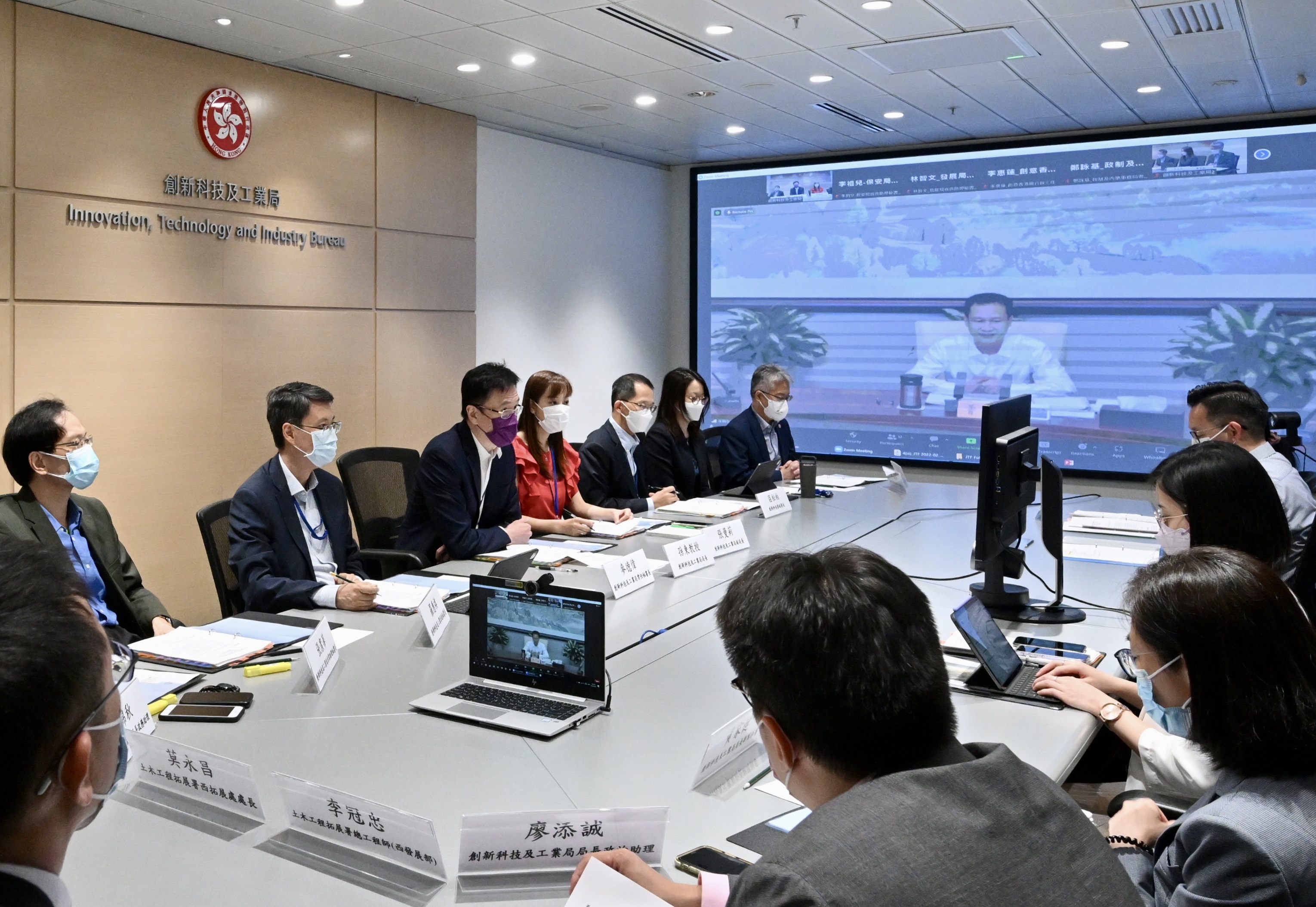 創新科技及工業局局長孫東教授與深圳市委常委曾湃今日(25日)透過視像會議方式共同主持河套區港深創新及科技園發展聯合專責小組(聯合專責小組)第九次會議。