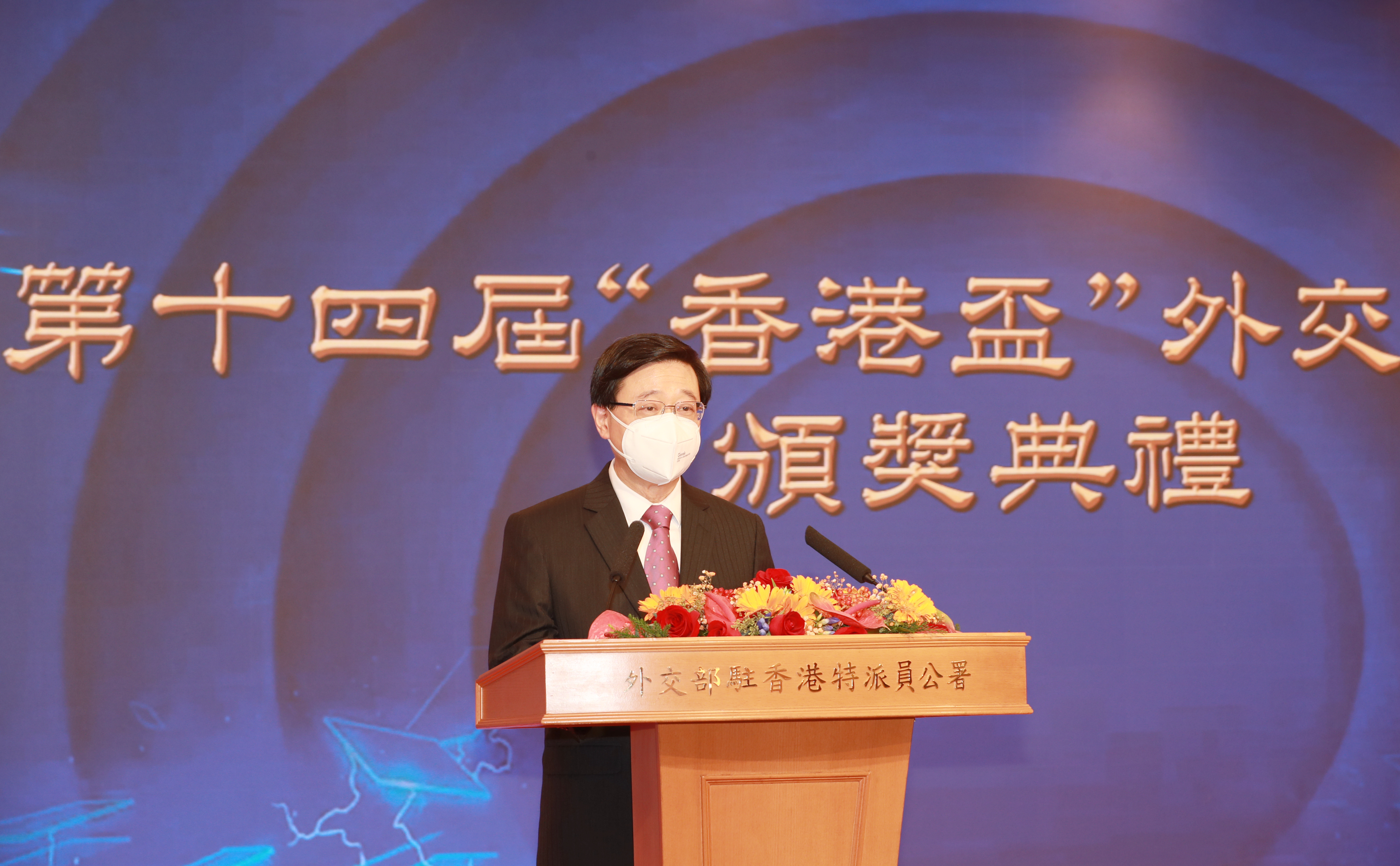 香港特別行政區行政長官李家超致辭表示,今年疫情為香港帶來嚴峻挑戰,但本屆競賽規模打破紀錄,同學們在家依然持續學習和積極備戰,充分證明了香港青年對比賽的支持、對外交的熱衷和對國家發展的重視,令人鼓舞。